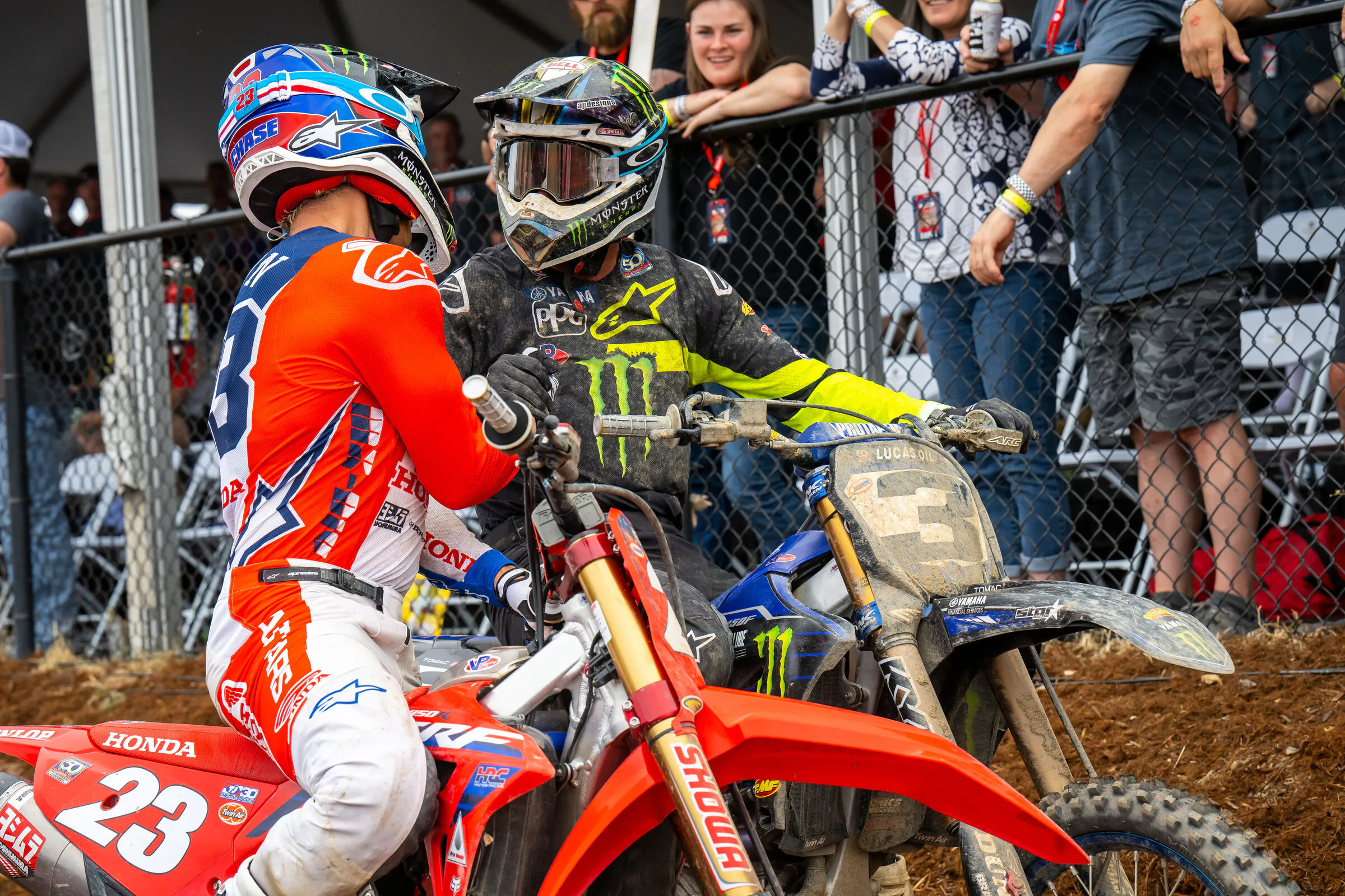 That far end of the track there, I was making up time there heading to the step up. That was a good, technical section, and you had to make sure to stick to the inside once you got to the top of the step up there. Me and Chase [Sexton] went at it for a while, he stayed right on my wheel. Right down to the end, I even got a little sketchy on the last lap and he was right there when we got to the hip jump on the last lap he was right there. Barn burner to the end.