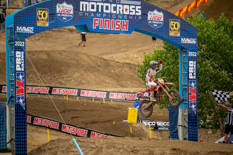 Star Racing Yamaha’s Cooper Webb won the first moto at the Ironman, but then crashed out of the second moto. His teammates prevailed in his absence, as Aaron Plessinger won the overall and Jeremy Martin clinched the 250 Pro Motocross Championship with a conservative sixth overall.