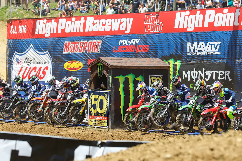 The fourth round of the 2022 Lucas Oil Pro Motocross Championship took place on Saturday at High Point Raceway in Mt. Morris, Pennsylvania, and man, did the first East Coast race provide us with some great racing! The weather conditions were perfect, closing the field some, but the day was not easy as the southwestern Pennsylvania dirt took to its typical rutted, beat up, rough track. Still, each race in both classes treated us to some epic battles from the front runners through the mid-pack battles.