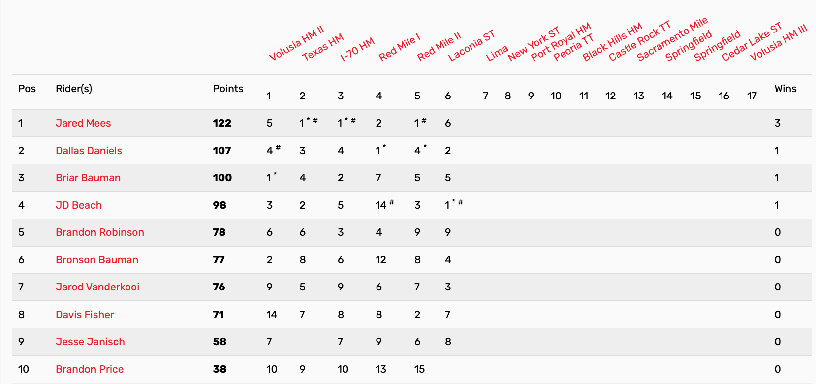 | 8 | Christian Craig | Temecula, CA | 8 - 6 | Yamaha YZ450F |