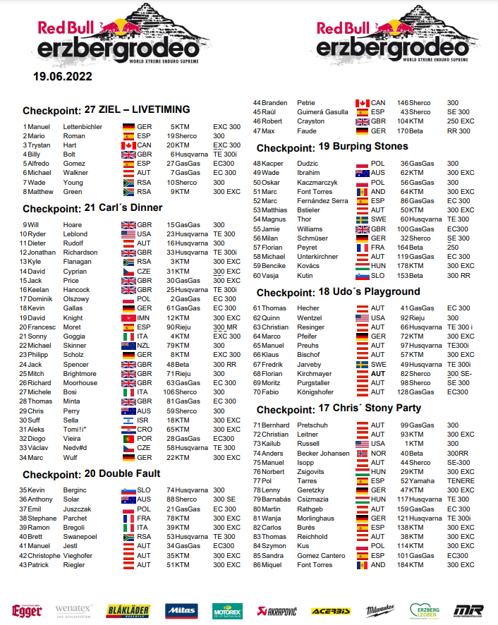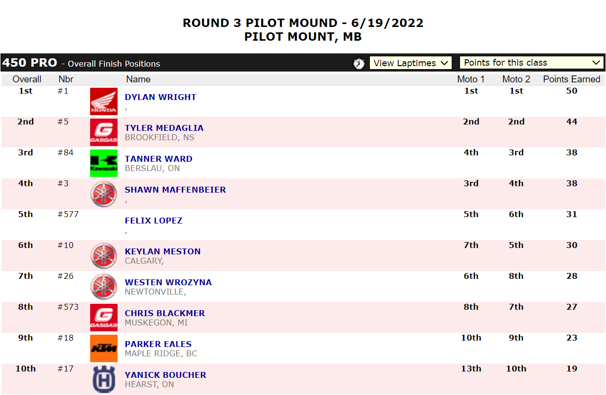 June 18, 2022| Rider | Hometown | Motos | Bike | |