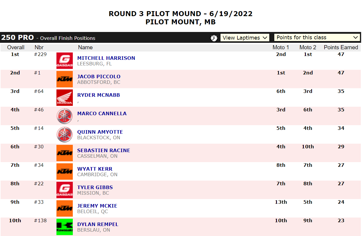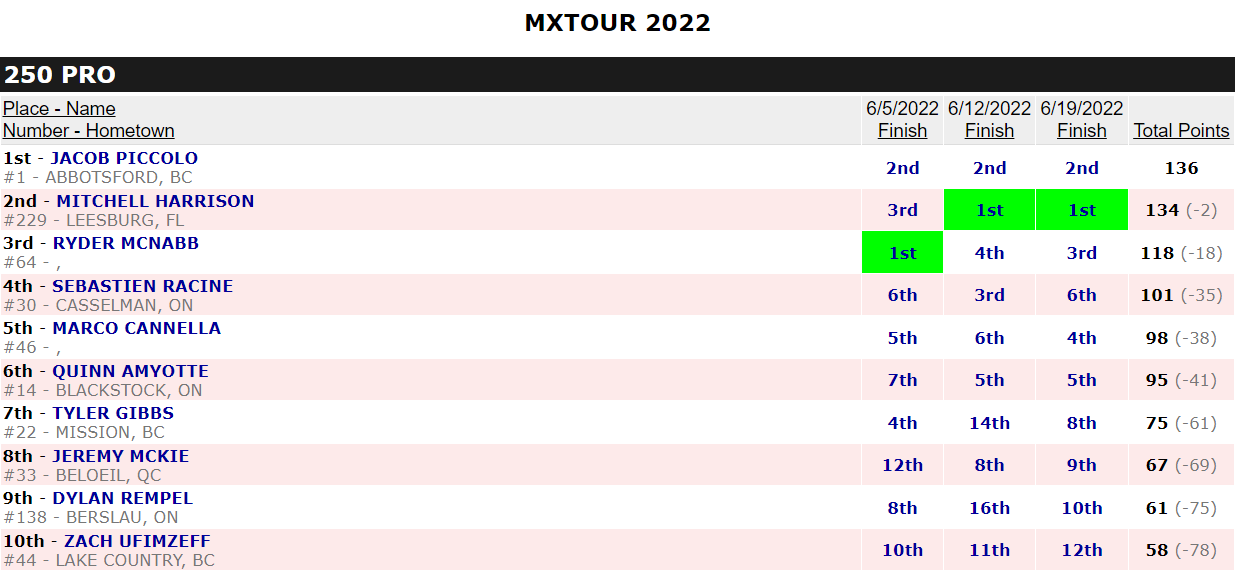 | Mitchell Harrison (GasGas) | Canadian Triple Crown (Combined) | 250 |