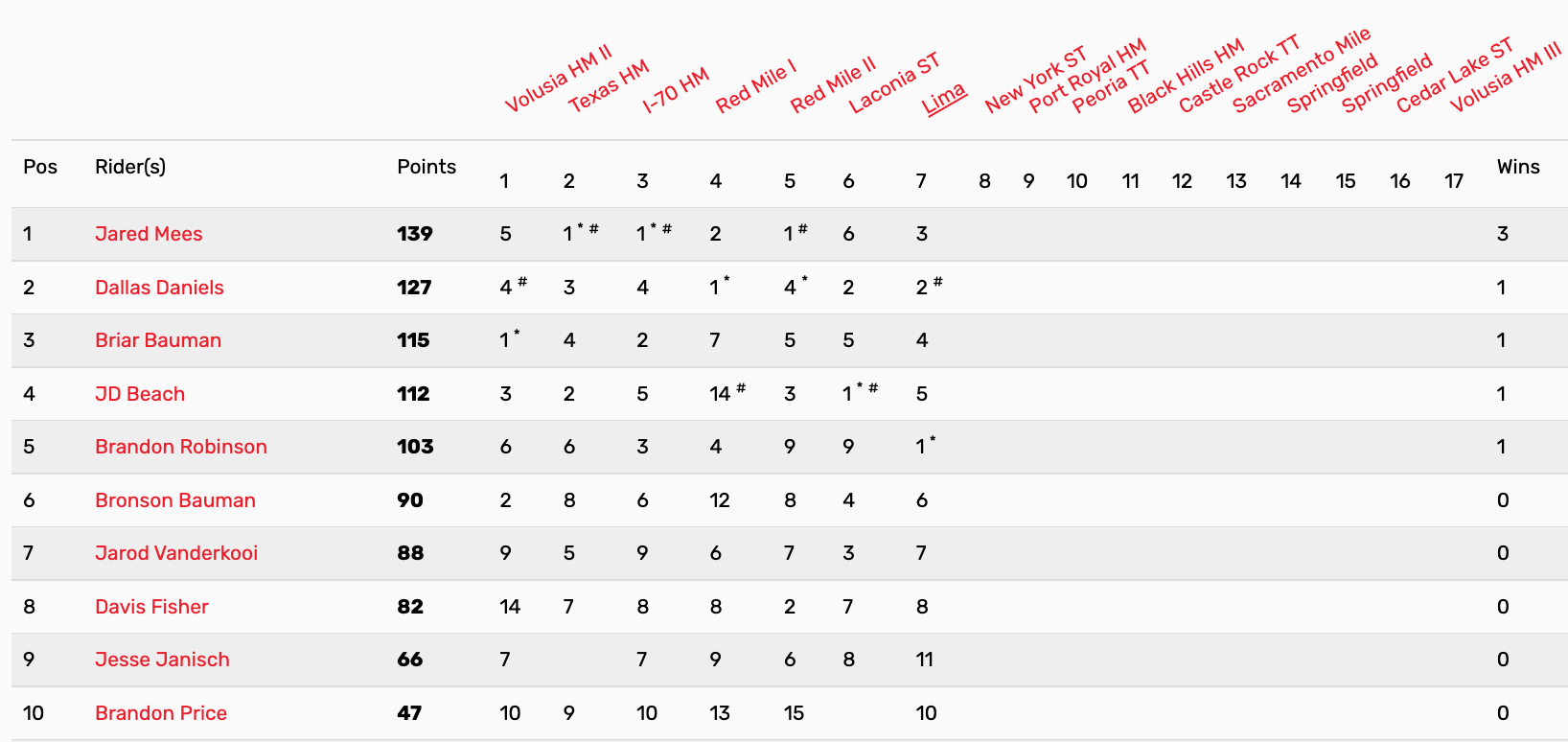 | Jared Mees (Indian) | American Flat Track | AFT SuperTwins |