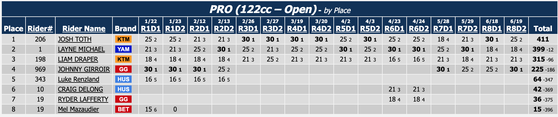| All 2022 Results | Ricky Carmichael Amateur Daytona Supercross (RCSX) Results | NA |