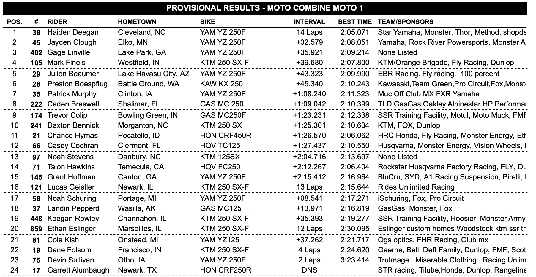 Daxton Bennick Mitch Kendra ![Haiden Deegan winning the first moto.]()