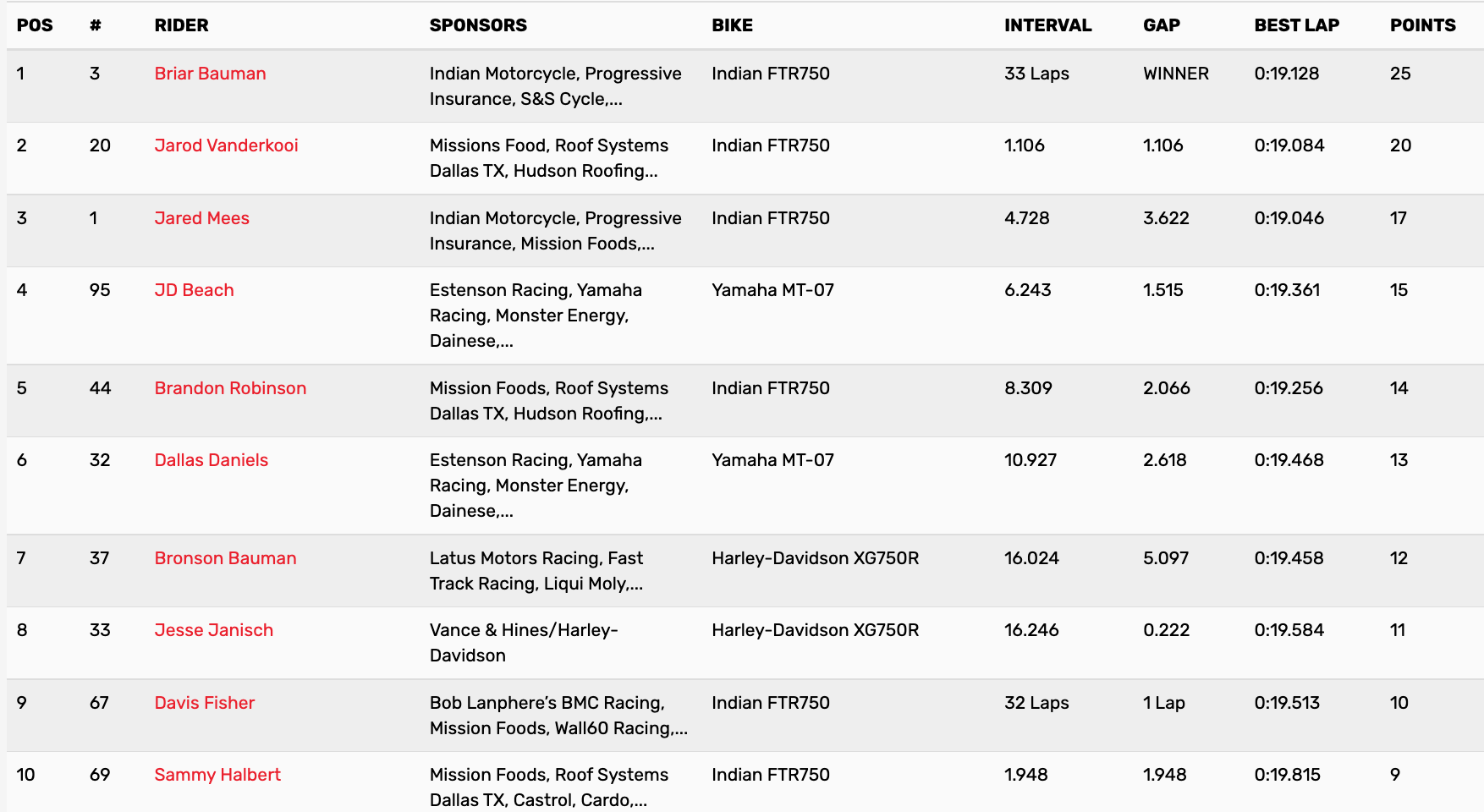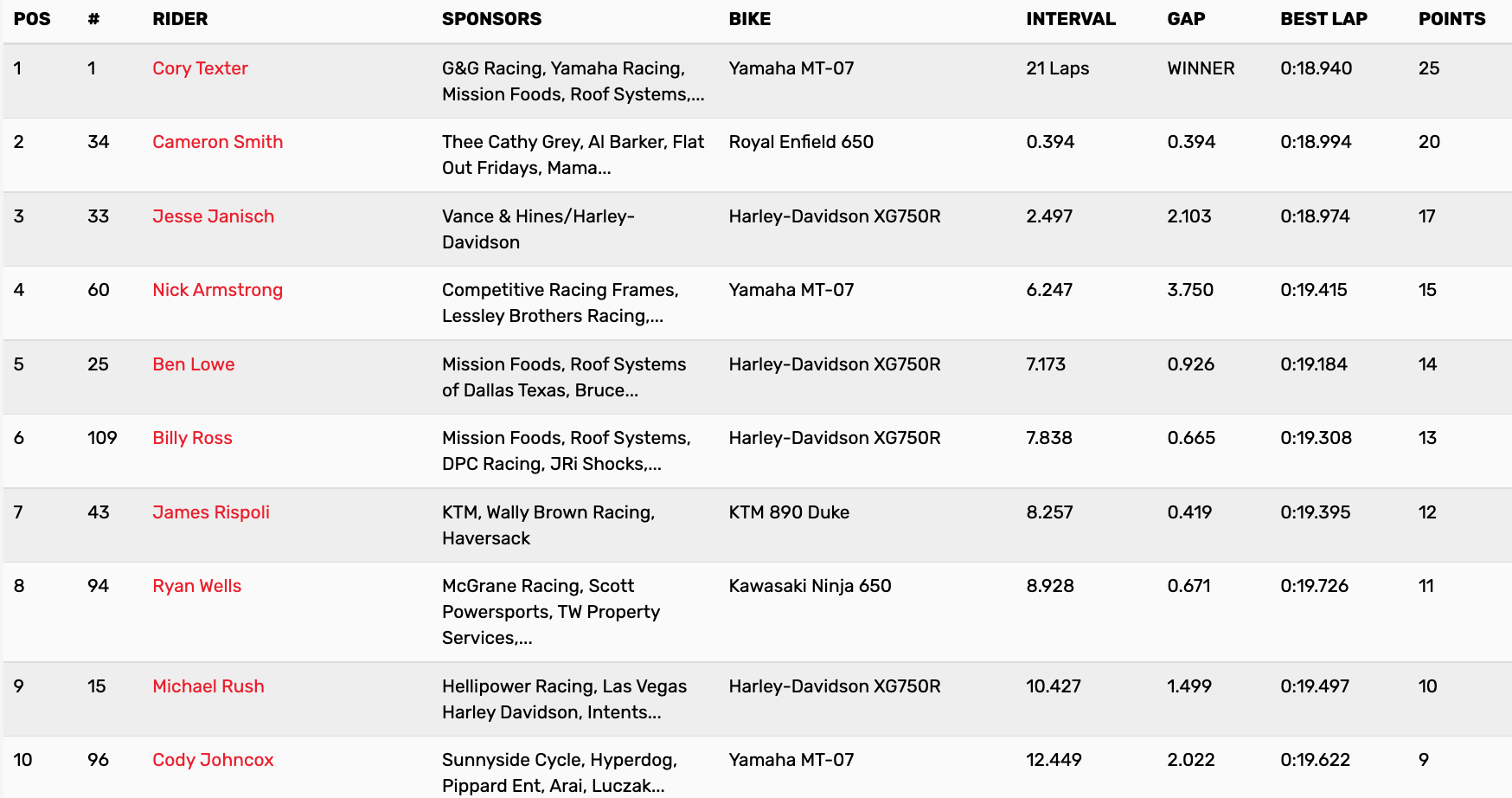 | Kody Kopp (KTM) | American Flat Track | AFT Production Twins |
