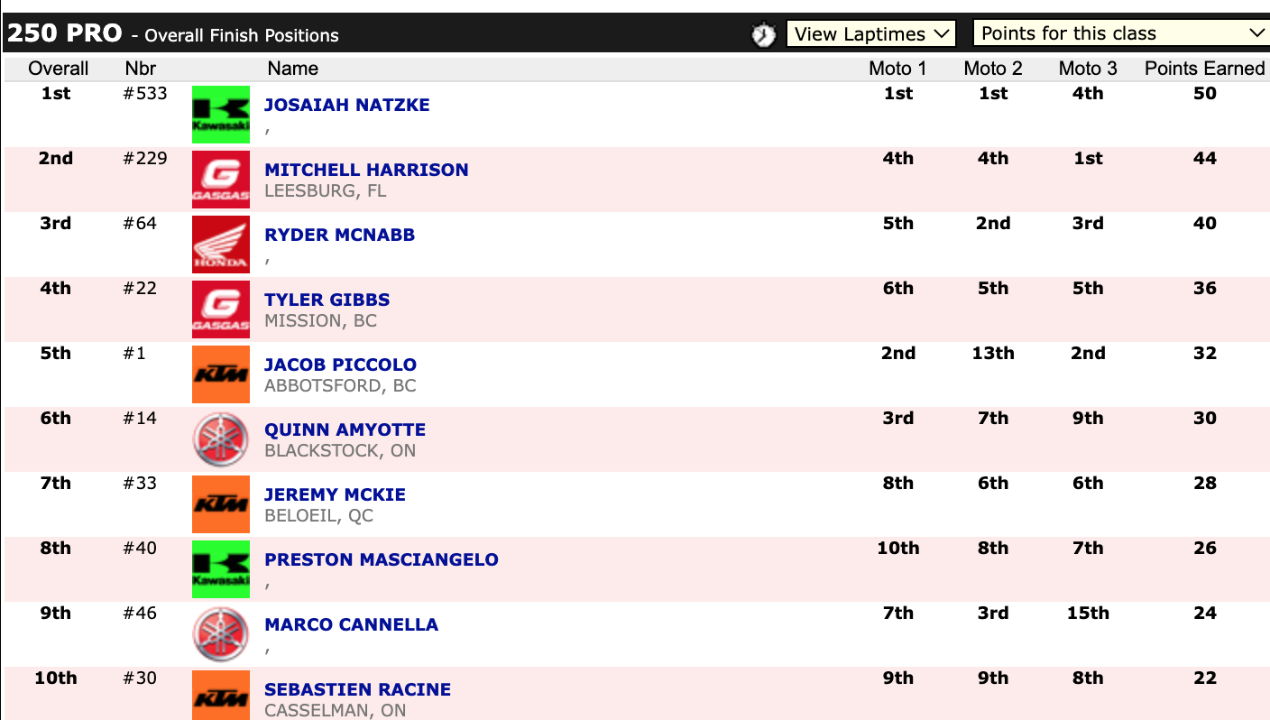 | Mitchell Harrison (GasGas) | Canadian Triple Crown (Combined) | 250 |