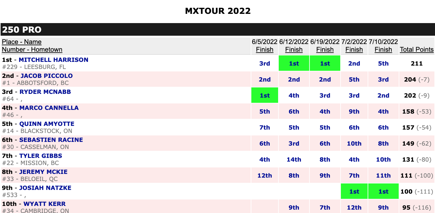 | Mitchell Harrison (GasGas) | Canadian Triple Crown (Combined) | 250 |