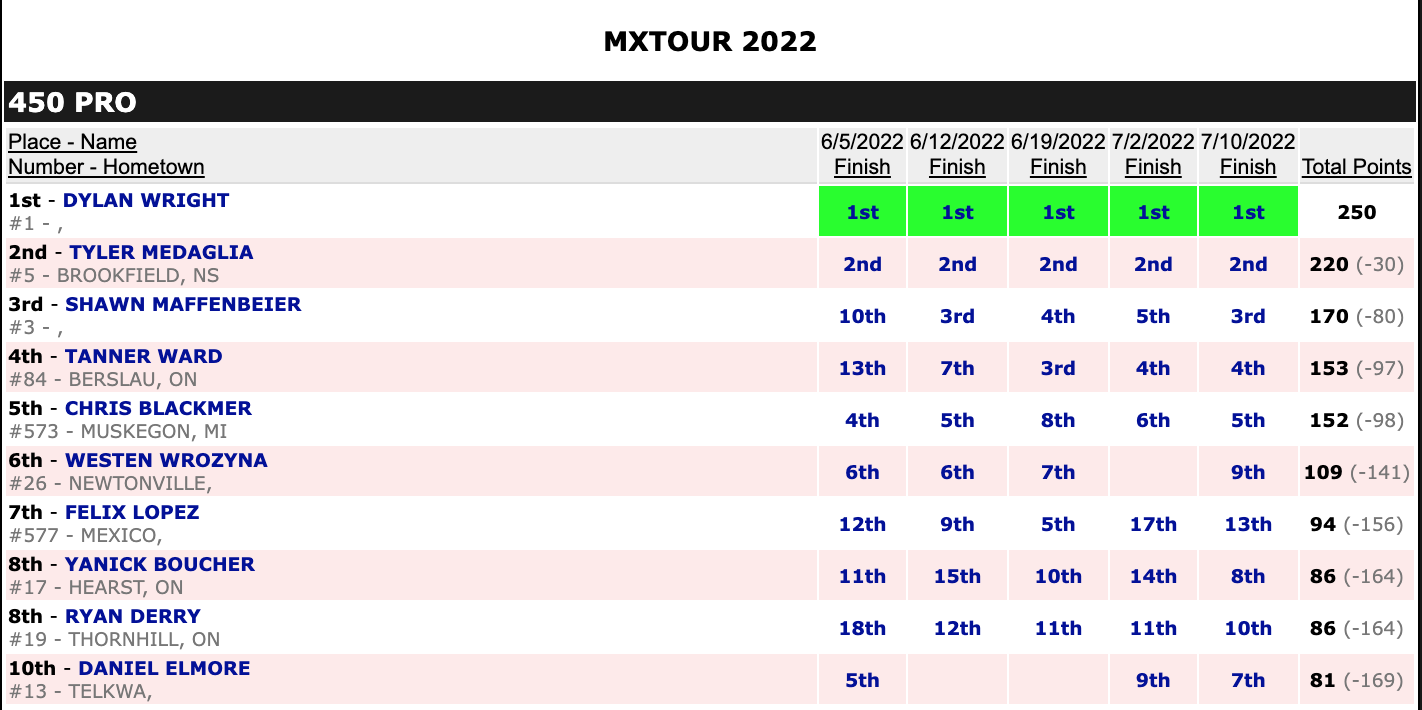 July 9, 2022| Rider | Hometown | Motos | Bike | |