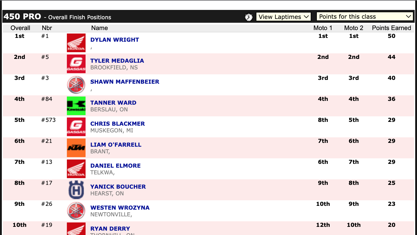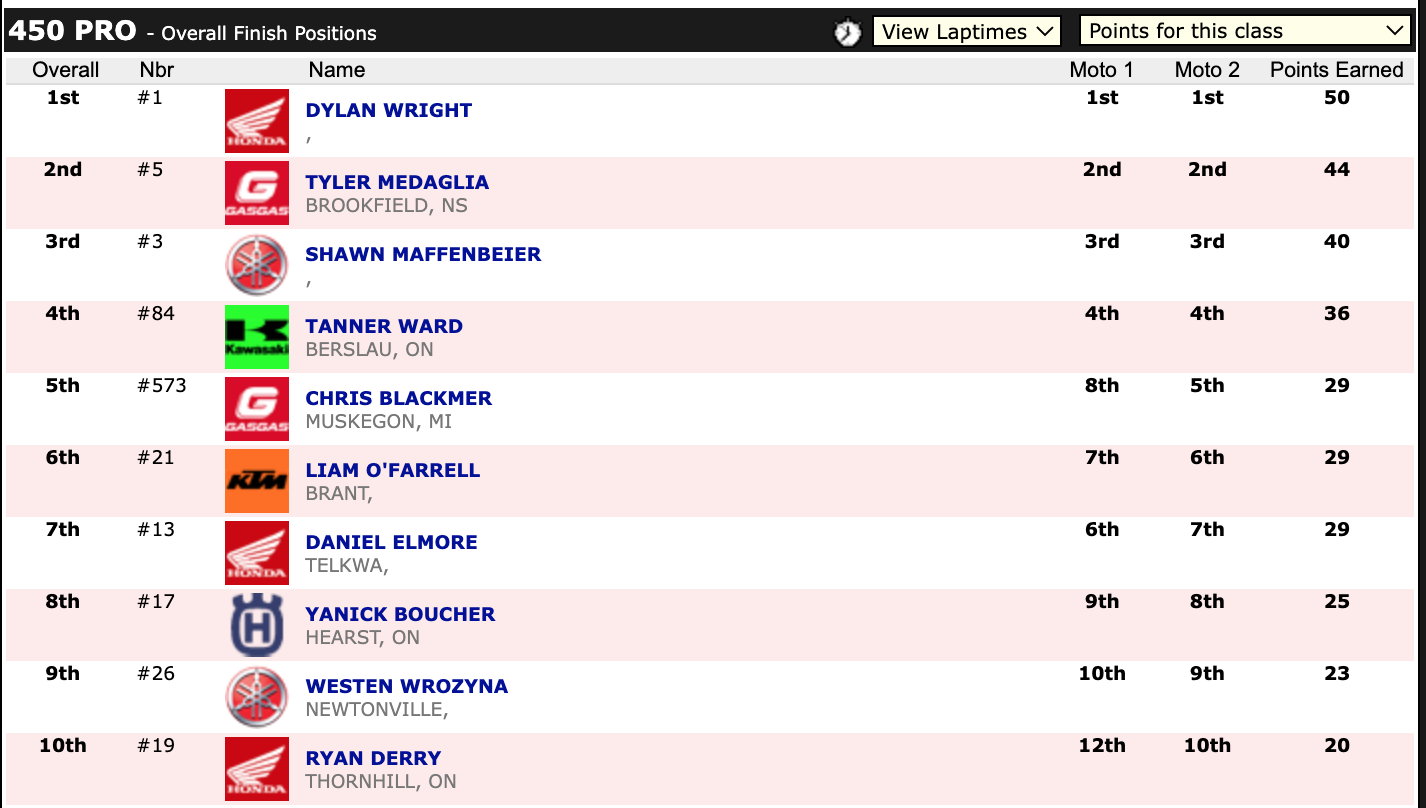 | Dylan Wright (Honda) | Canadian Triple Crown (Motocross) | 450 |