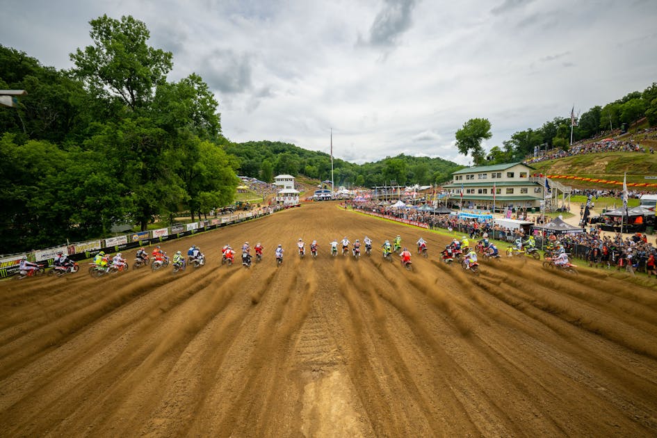 I raced this national twelve times and have been to it for somewhere around twenty national events. I have seen it in many different conditions. I think this year’s harder base was due to the rain that came in on Thursday evening and the last-minute salvage job for amateur day on Friday. When it rains that late in the prep stage, the track workers are forced to scrape much of the dirt away to get down to something ridable. Instead of having that topsoil that the Martin family trucks in for the event, it’s now been pushed to the side of the track in an attempt to save the Friday race. Even after trying to push that same dirt back onto the track for Saturday, it’s just not the same. The harder base has been exposed and will rear its ugly head when lines get worked in on Saturday. It wasn’t super evident to the naked eye but nearly every rider mentioned it. Also, those crashes by Joey Savatgy and Ken Roczen just before the mechanics’ area were perfect examples of a deceptive base catching riders out.