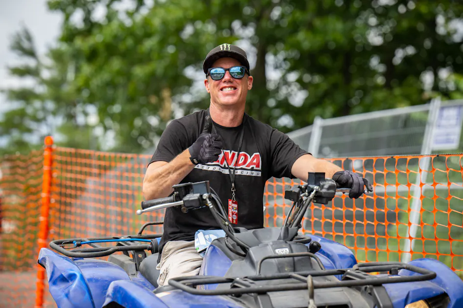 On Friday before the Southwick National, New England fan favorites Doug Henry, John Dowd, and Jimmy Decotis stopped by the Monster Energy Stage to share some memories and talk about what they're doing today. For Dowd and Henry, the story is simple: the legends are now part of the Southwick track crew! Jimmy D, meanwhile, stepped away from racing two years ago and had been quiet since, but now he's back on the bike and working with young riders in the area. He's also planning to race Southwick for fun next year!