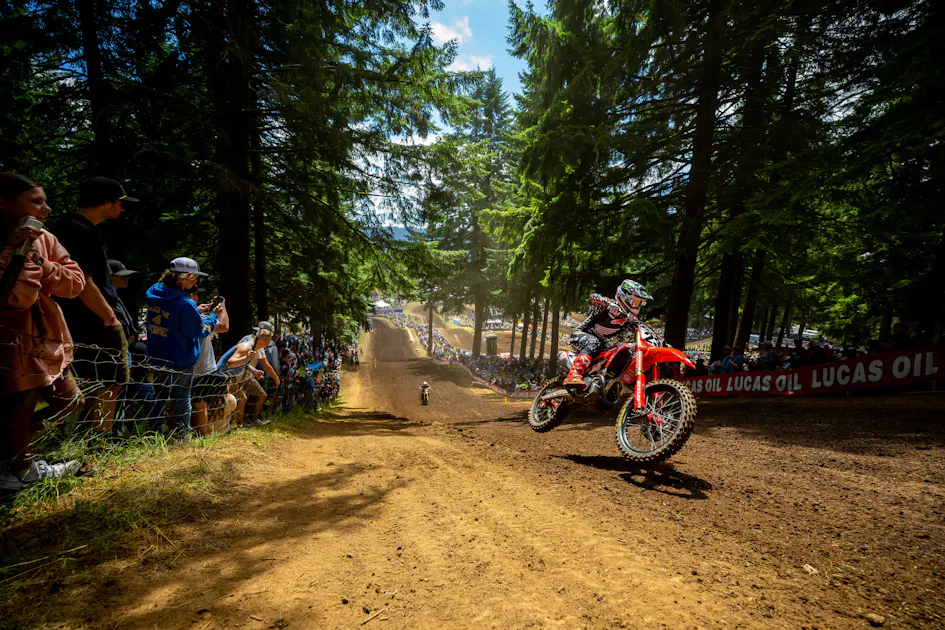 Honda HRC's Chase Sexton has ridden very well this season, but he's up against an all-timer in Eli Tomac, and getting wins is not easy. Tomac hung eight-straight moto victories on the board through High Point, RedBud, Southwick, Spring Creek and the first moto at Washougal. Some of the battles between the two have been classics, and that included the racing in Washington. In moto one, Tomac passed Sexton and then hung on in a wild battle, which included a tip over by Tomac, leaving Sexton with nowhere to go. The two riders were then stuck in heap, trying to get their bikes started in silence. Then the picked right back off and continued the fight right where they left off!