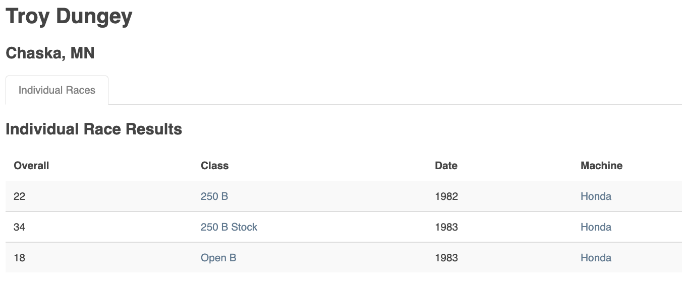 After that, you won’t see the Dungey family appear in the results again until 2002, a full twenty years after dad first showed up. Hey, at least this racer dad knew what the experience was like!