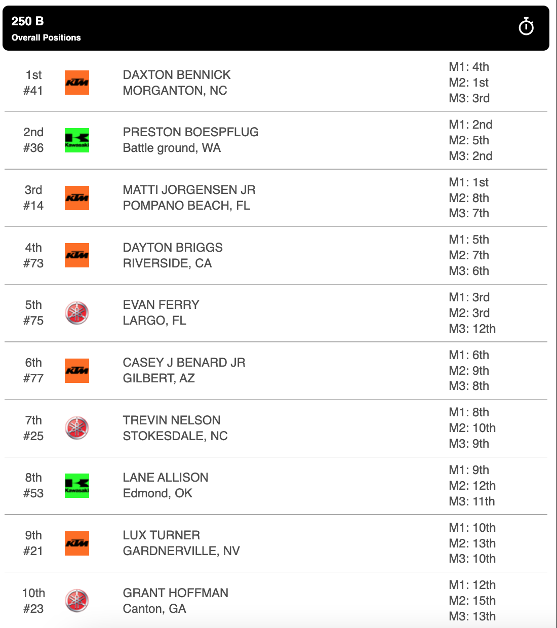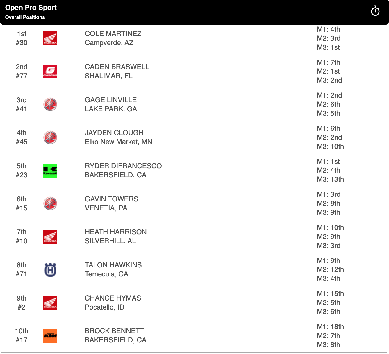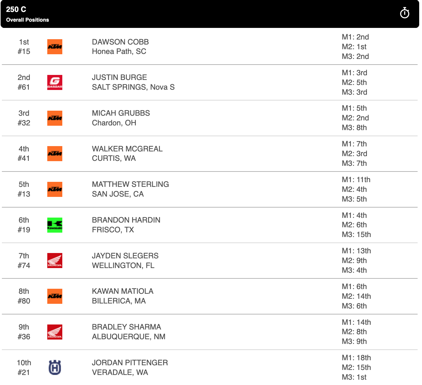 | Mateo Oliveira (KTM) | WORCS | Pro 250 MC |