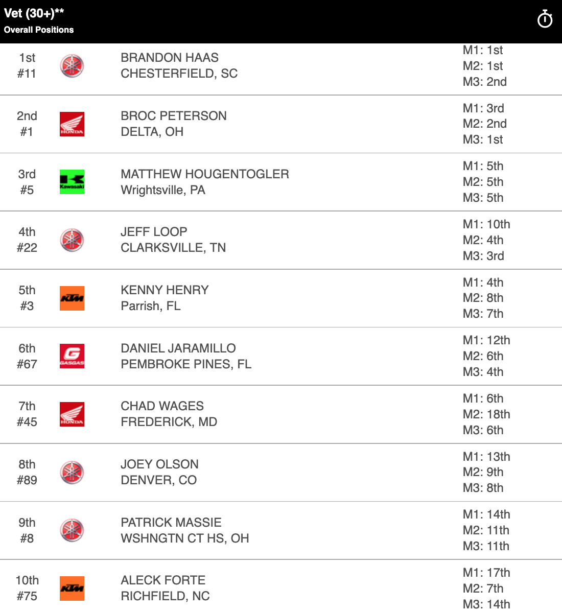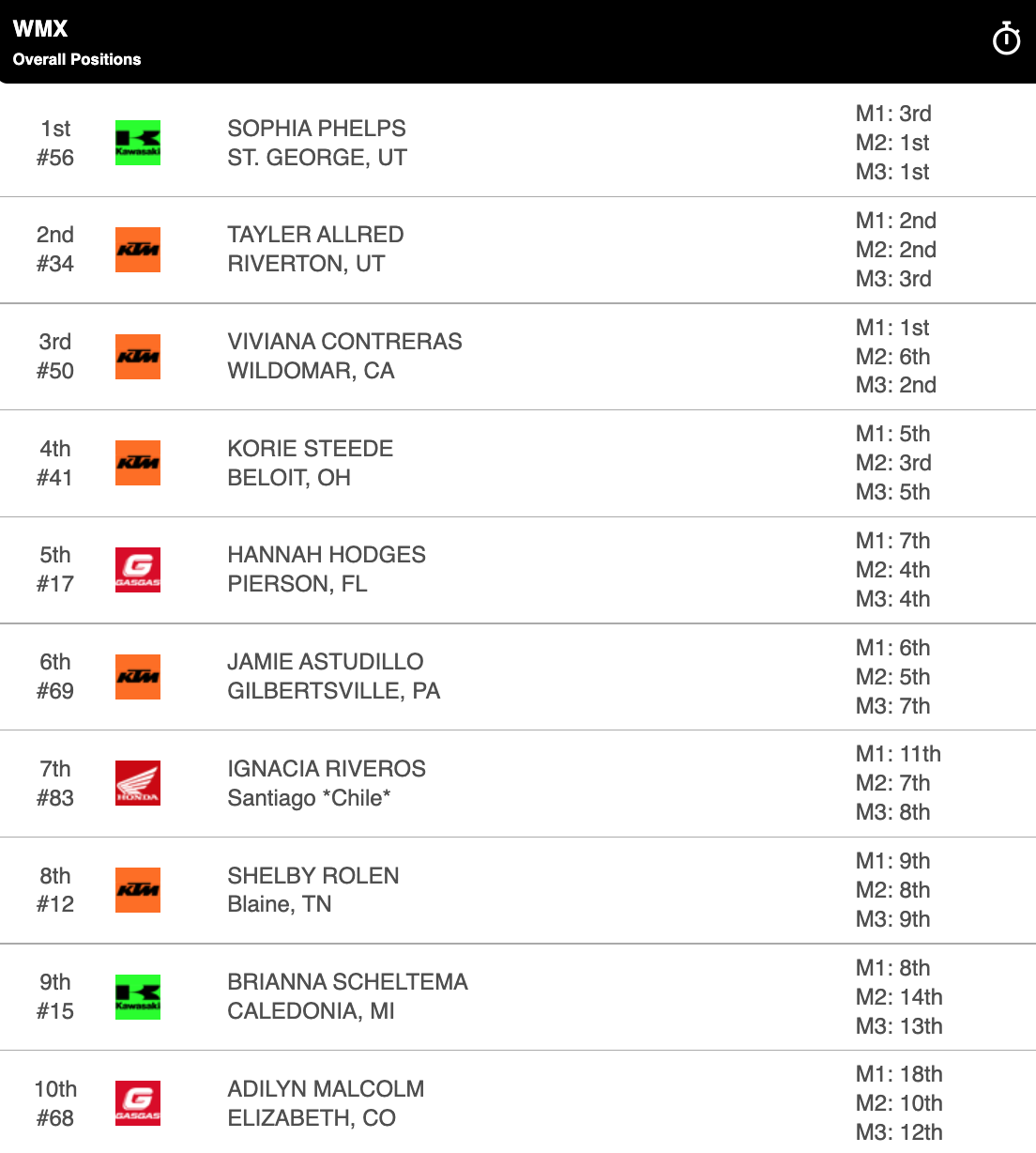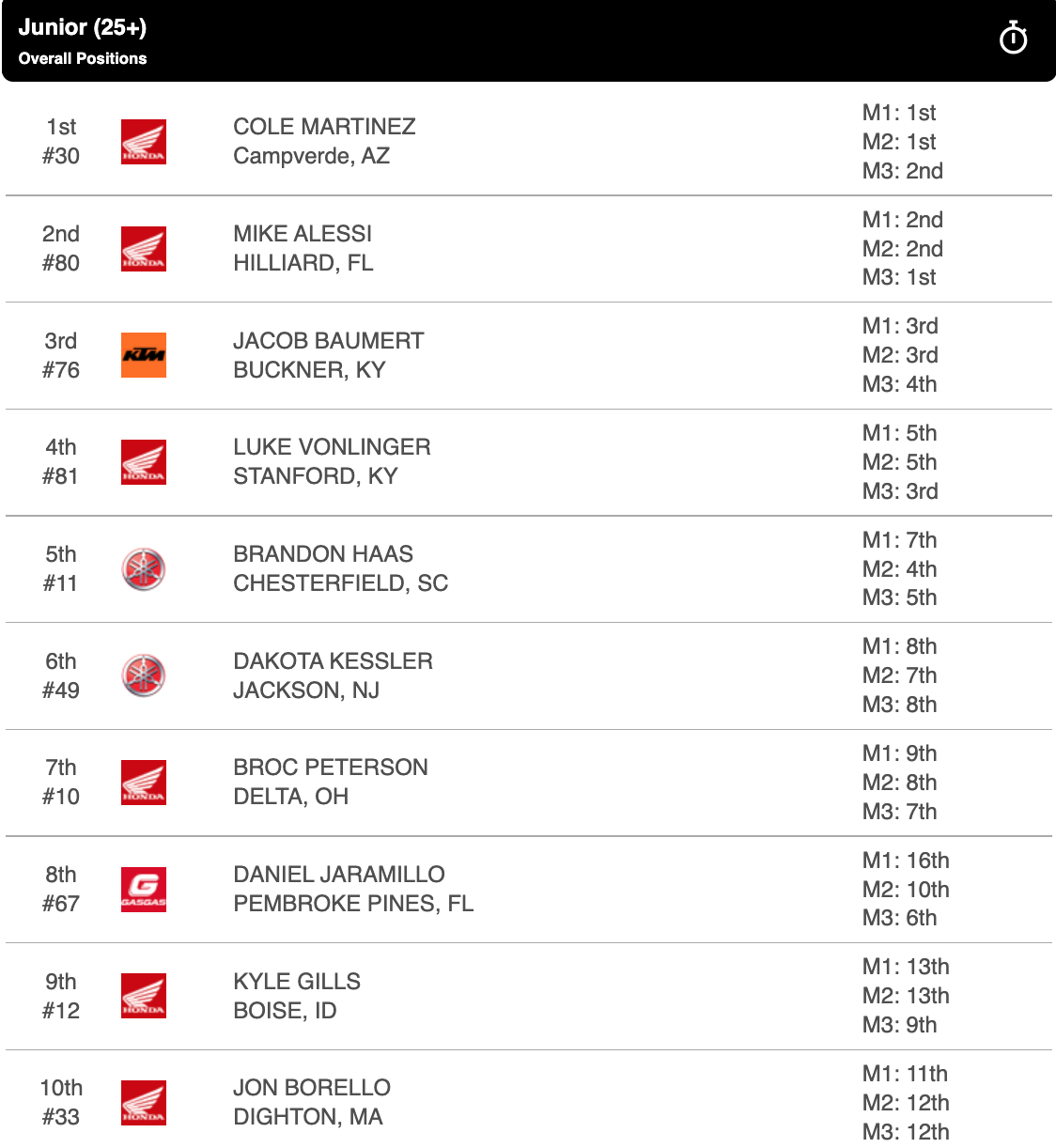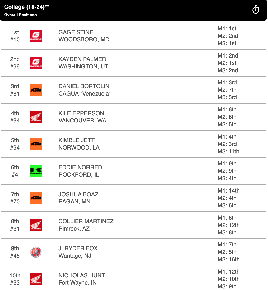 | Mateo Oliveira (KTM) | WORCS | Pro 250 MC |