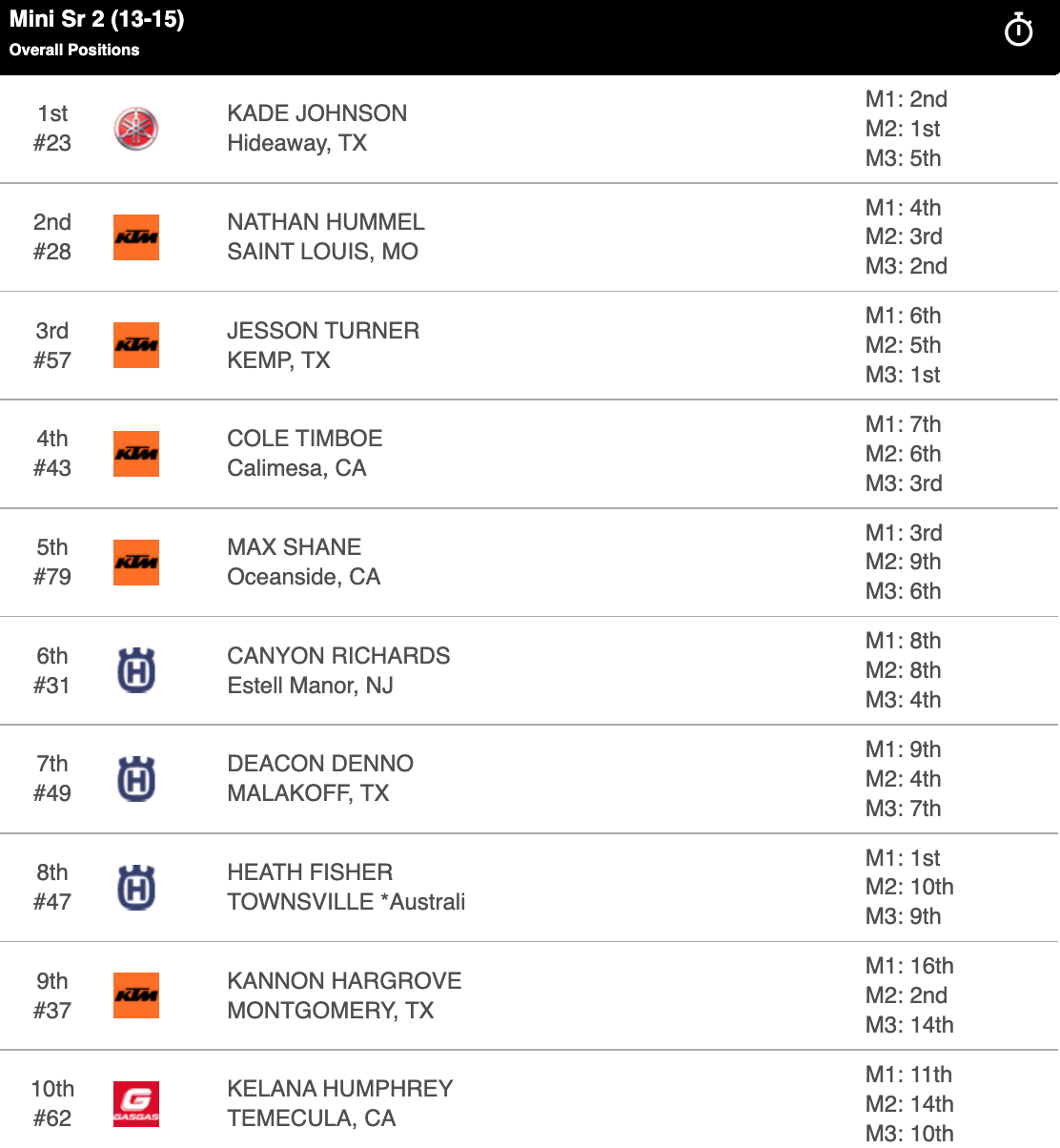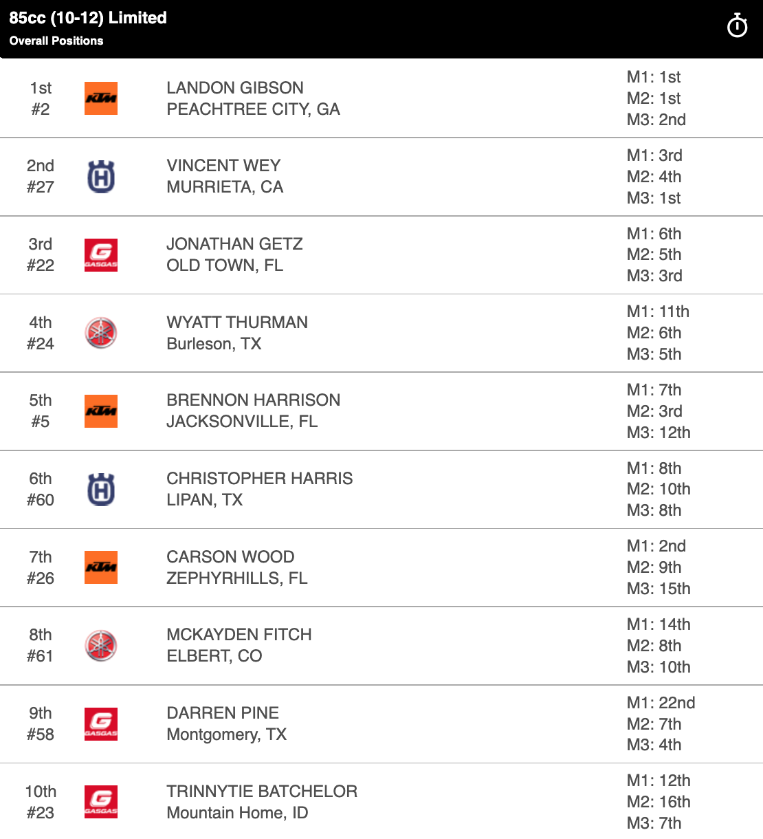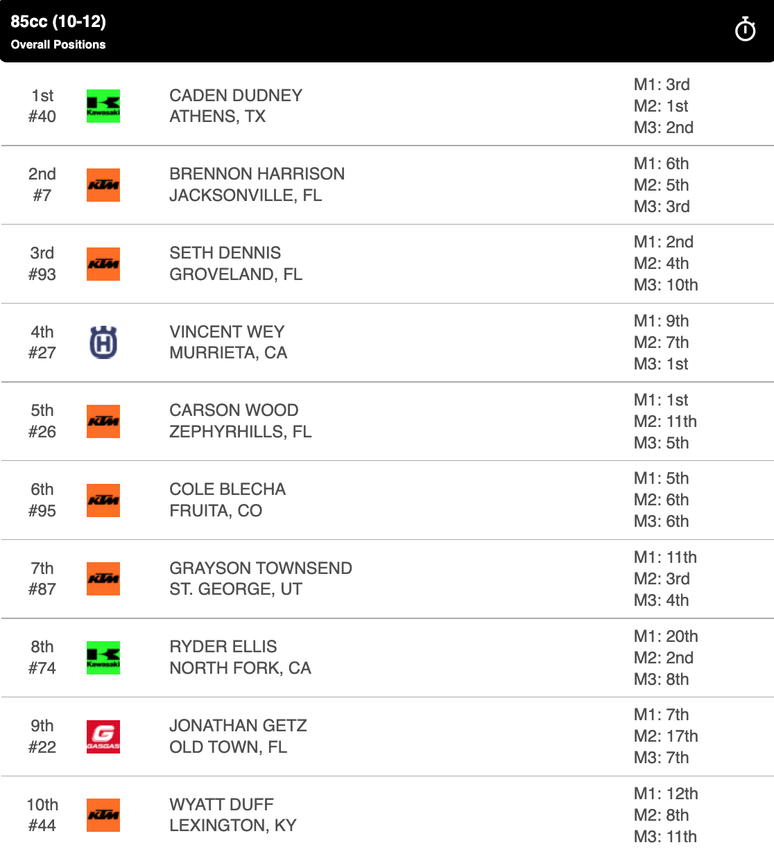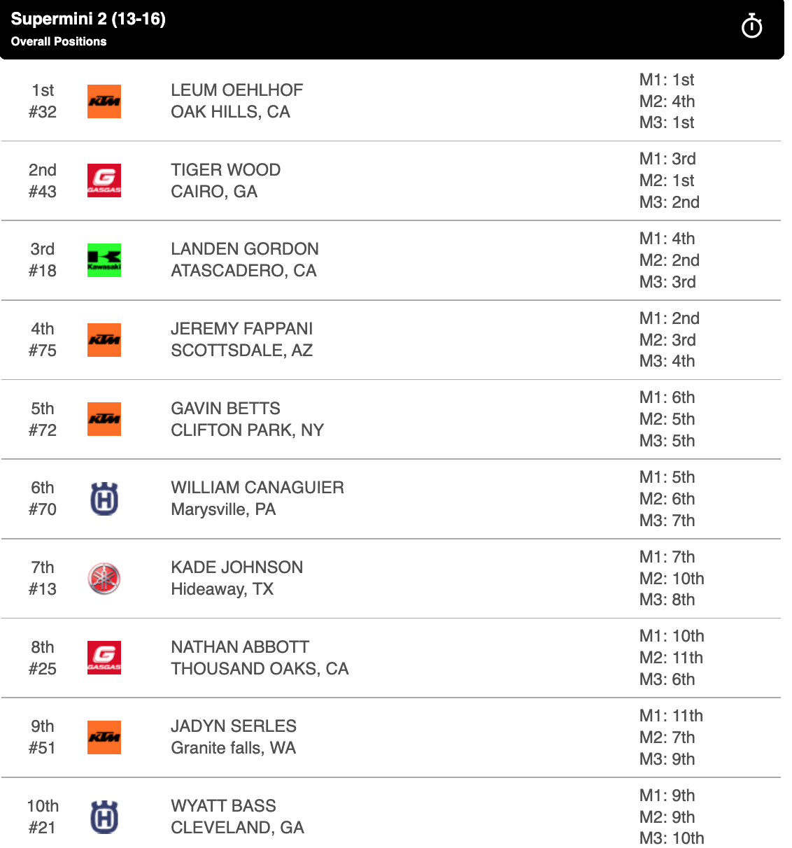 | Carson Brown (KTM) | Red Bull Straight Rhythm | 125/150cc |