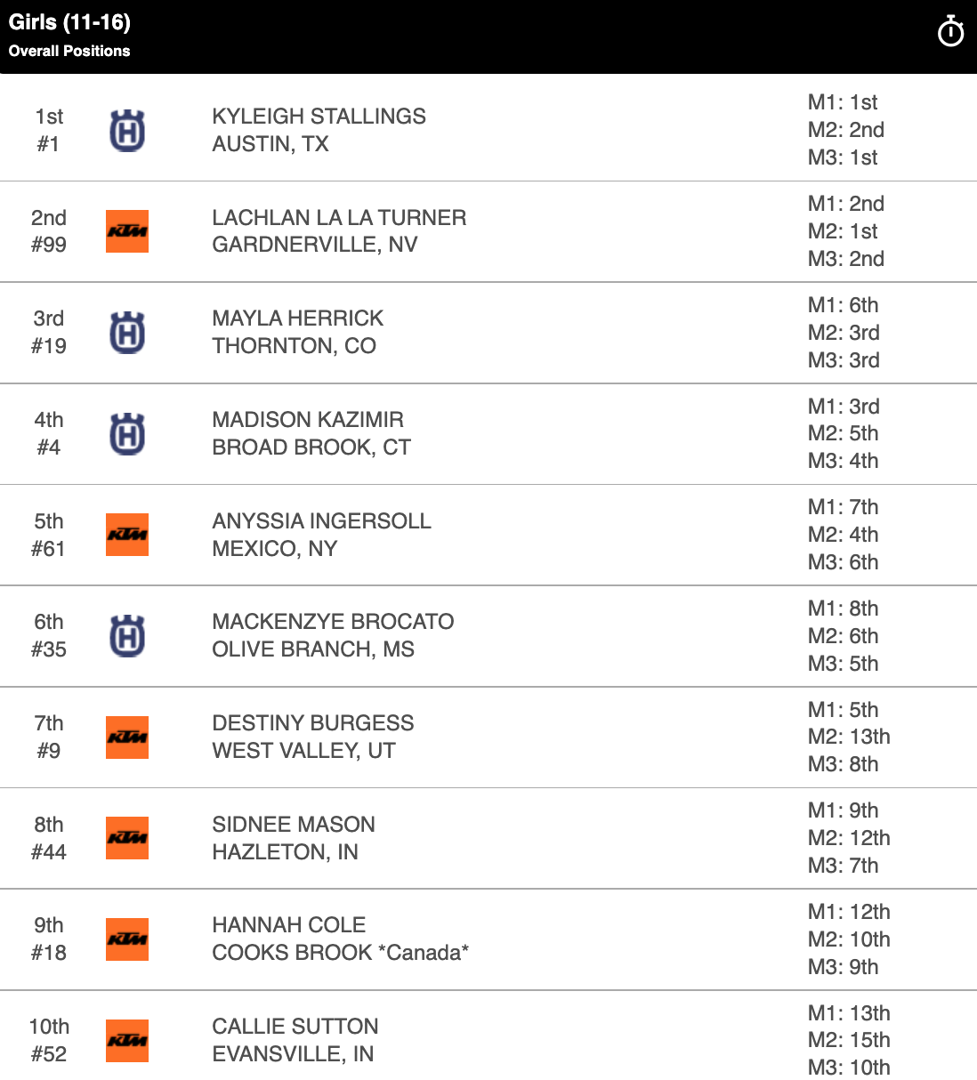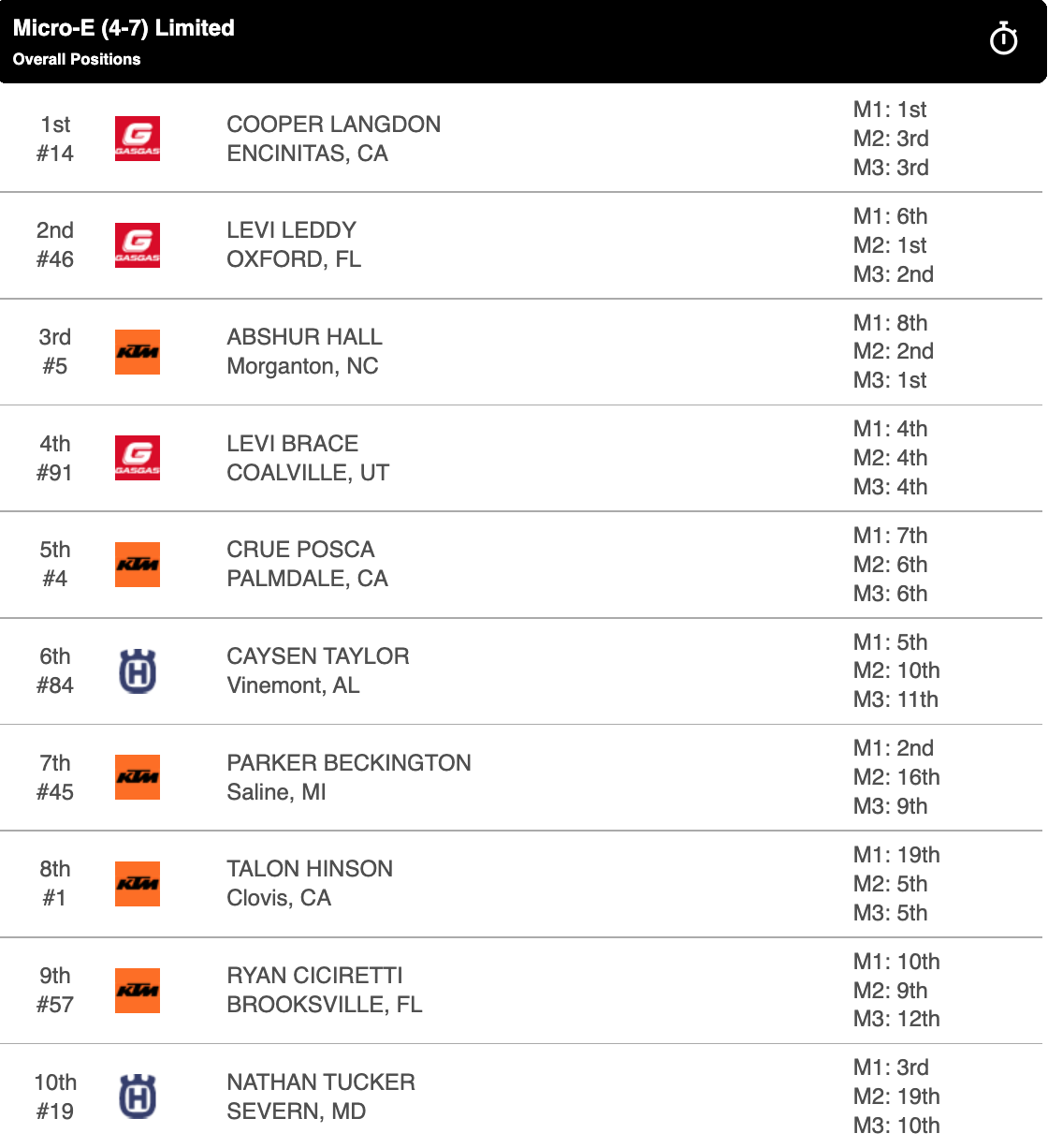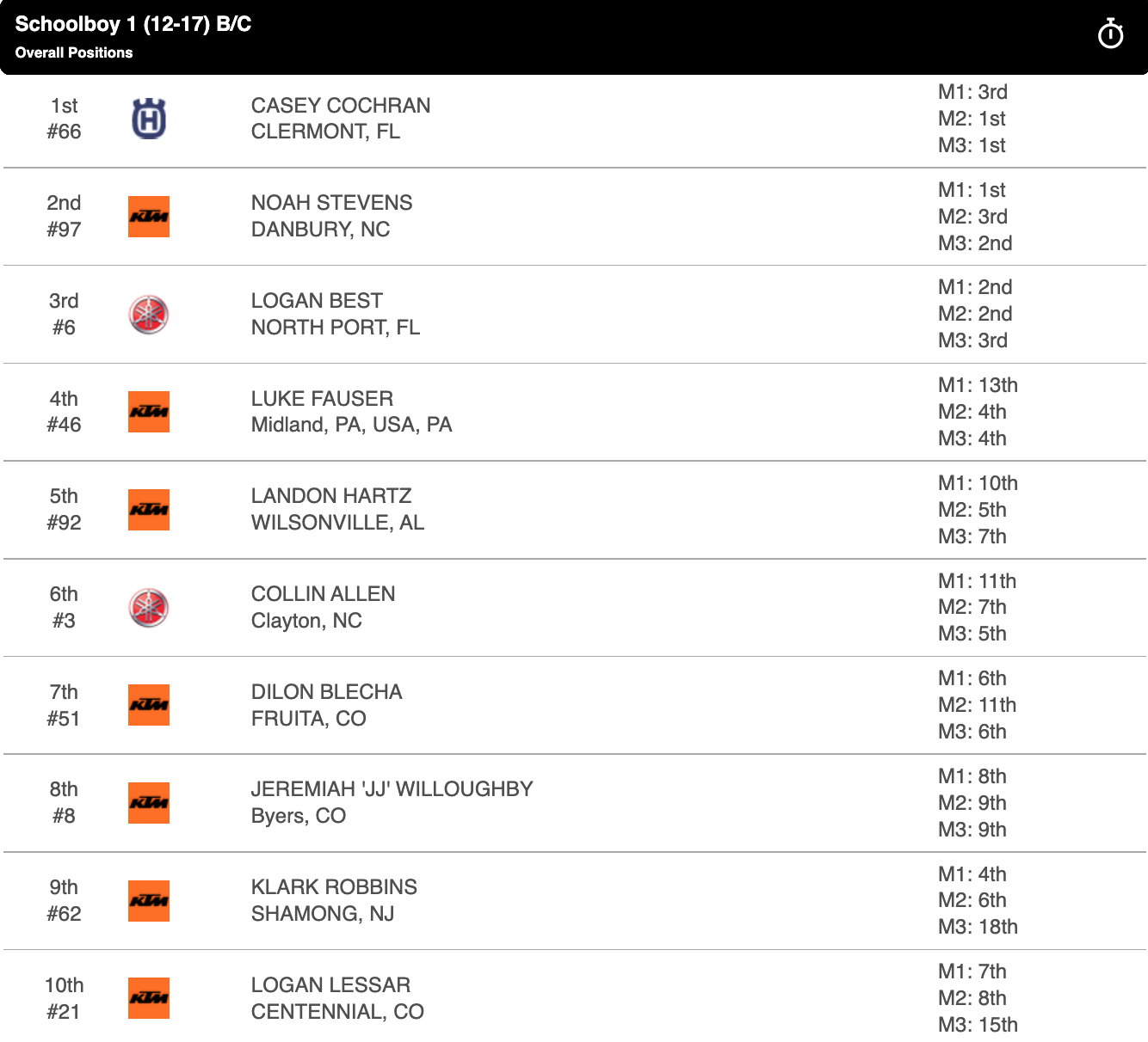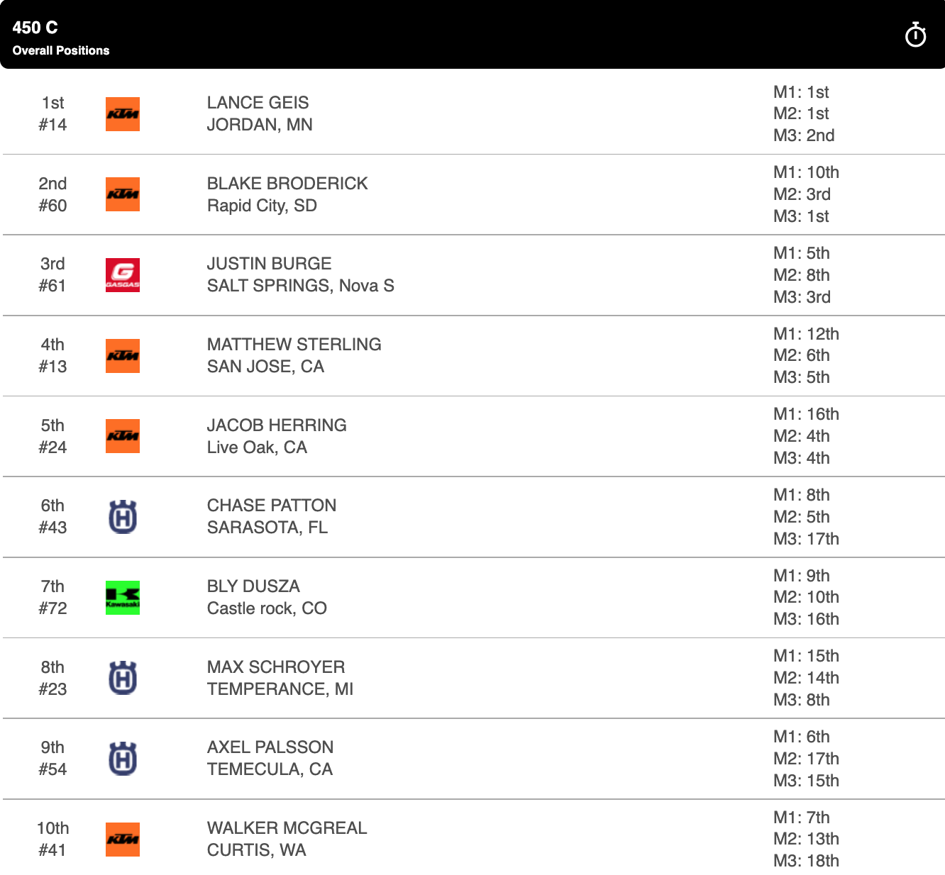 | Brody Johnson (Husqvarna) | GNCC | XC3 |