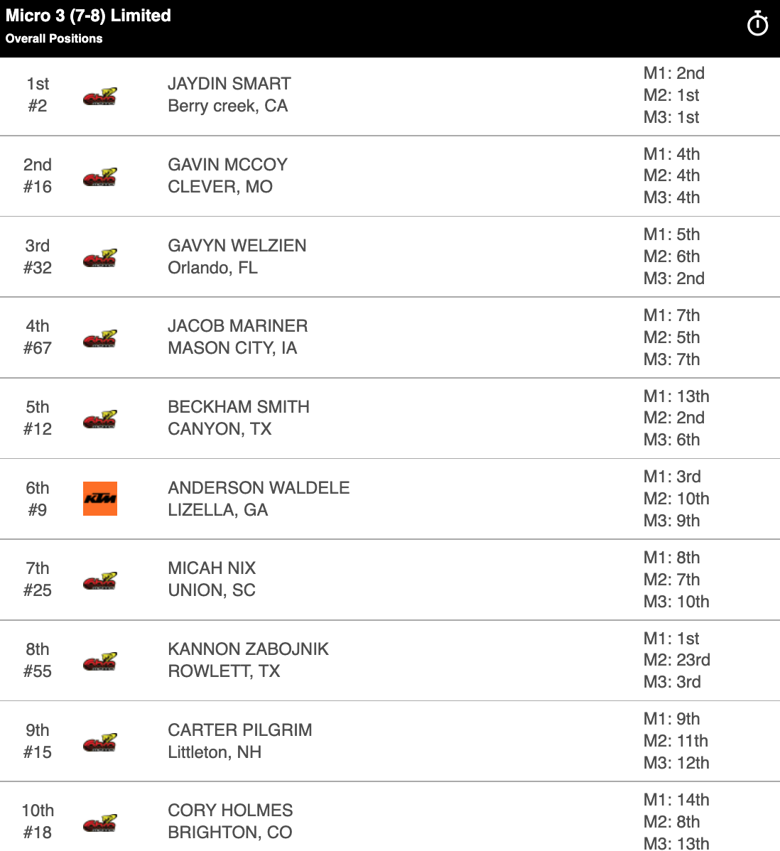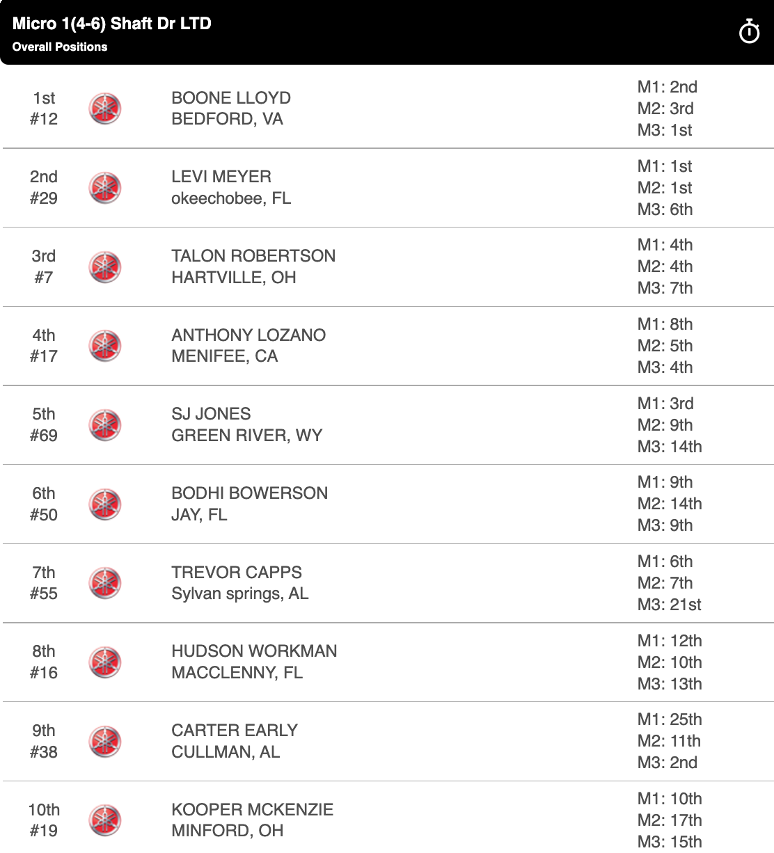 | Caden Braswell (GasGas) | Loretta Lynn's | Horizon Award |