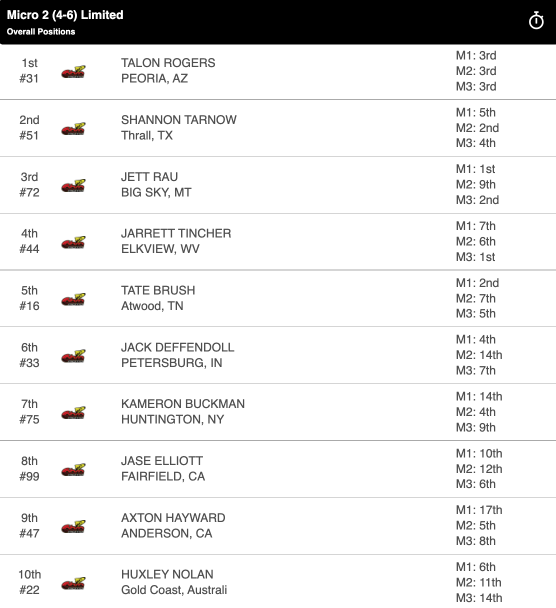 | Kayden Minear (KTM) | Penrite ProMX Championship | MX3 |