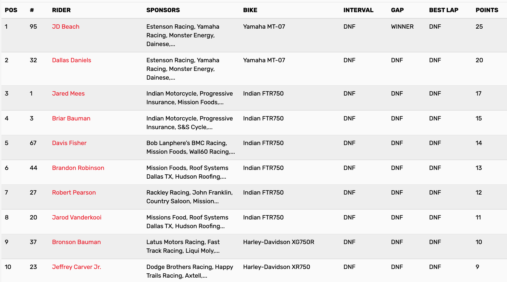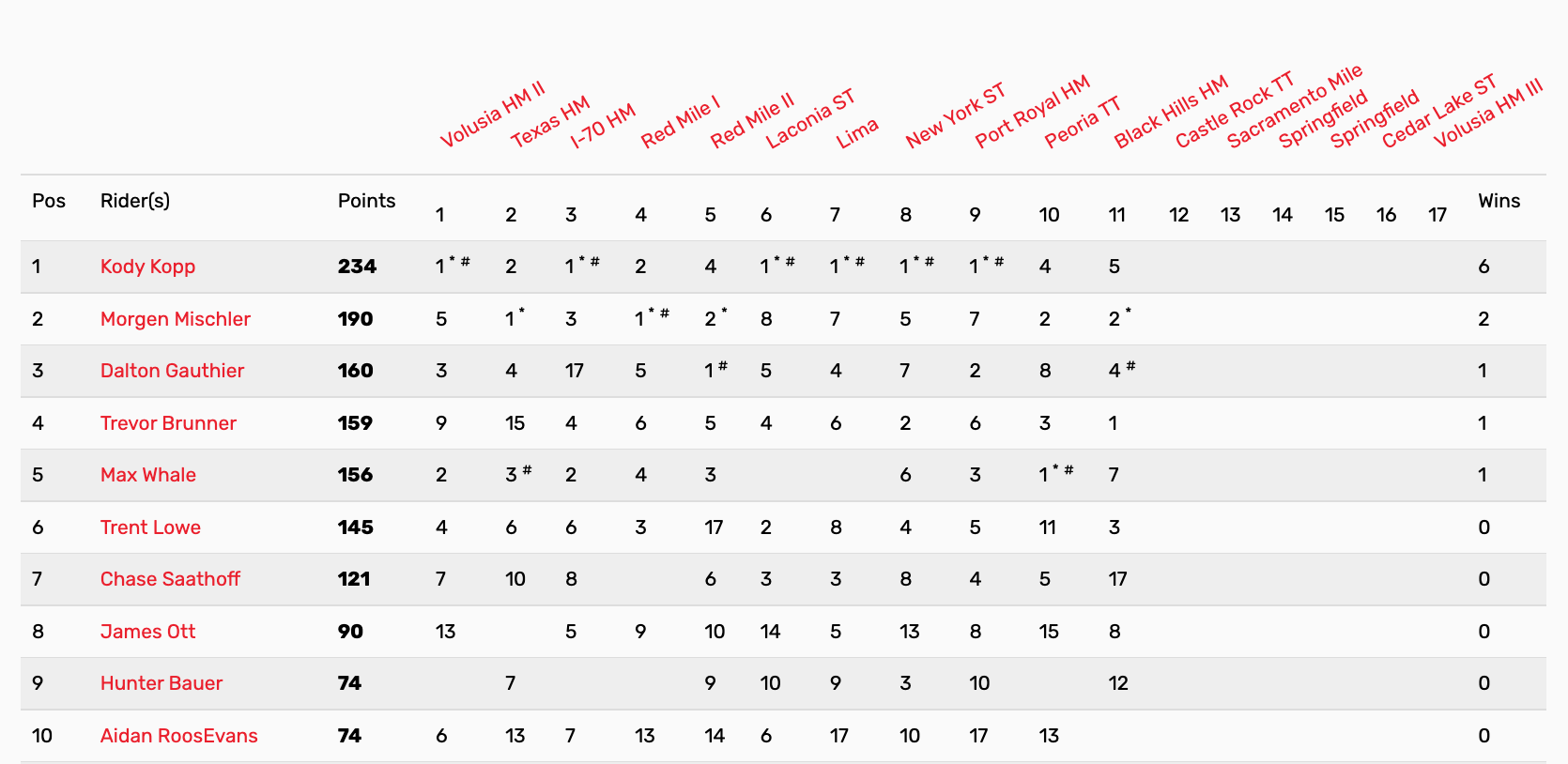 | Kody Kopp (KTM) | American Flat Track | AFT Production Twins |