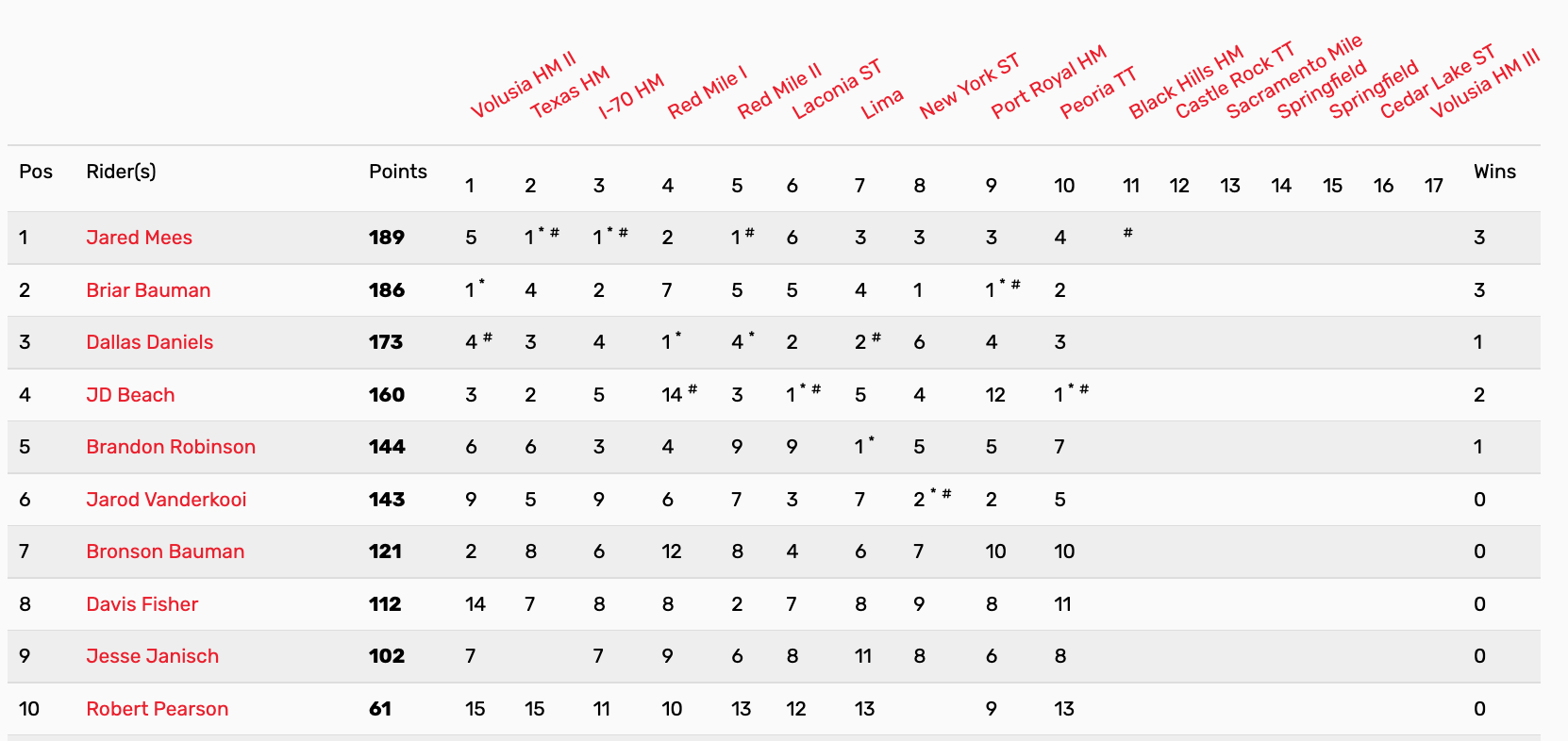 | Cody Barnes (Honda) | U.S. Sprint Enduro | Pro 2 |