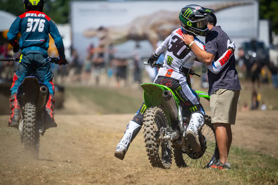 “We had positives today. I was fast in qualifying, which I haven't been. First moto, I felt like I got into a really good flow early and was clicking good laps off and landed back on the podium for the first time since Round 1. Second moto, I got a decent start and then just split out right after the finish. Someone went into the line I was going for and I tried to get out of it and just swapped the front. It was a bummer but we'll definitely take the positives out of today.”