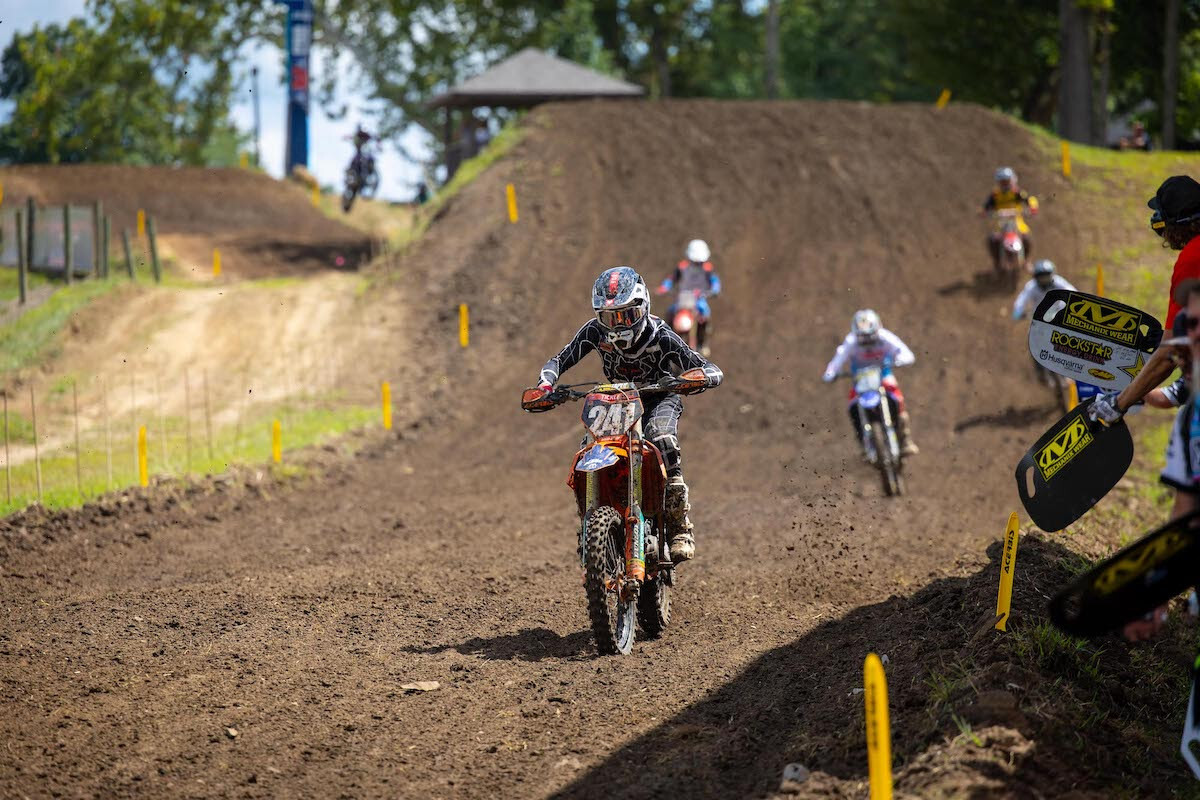 With the lead back in hand, Hymas methodically rebuilt the gap he established in the early stages of the moto. He went unchallenged through the remainder of the moto and cruised home to the Moto 1 victory by 7.2 seconds over Ferry, who maintained his strong hold of second the rest of the way, despite a late push by Fineis to close the gap from third. KTM Orange Brigade’s Daxton Bennick finished in a distant fourth, overcoming a 12th-place start, while Boespflug soldiered home in fifth.