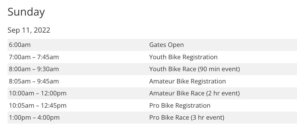 Race Day Schedule
