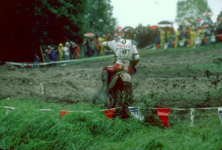But the mud definitely played in Hannah’s favor as he welcomed the rain. His years of experience in it, and specifically at Unadilla, should have given him a huge advantage. It didn’t show in the first moto, however, as French teenager Jean-Michel Bayle ended up top 125, and Hannah was only fourth. But in the second moto, with the rain continuing and the track falling apart, Hannah put in the last great ride of his career, shocking everyone as the top 125 rider and third overall in the 125/250 moto, behind only Johnson and Belgium’s Eric Geboers, the reigning 250cc World Champion. And with JMB docked a lap for receiving outside assistance, Hannah claimed the 125 class overall win, helping set his teammates Johnson and Ward set up to deliver a popular Team USA victory with first -and third- place finishes in the final 250/500 moto.