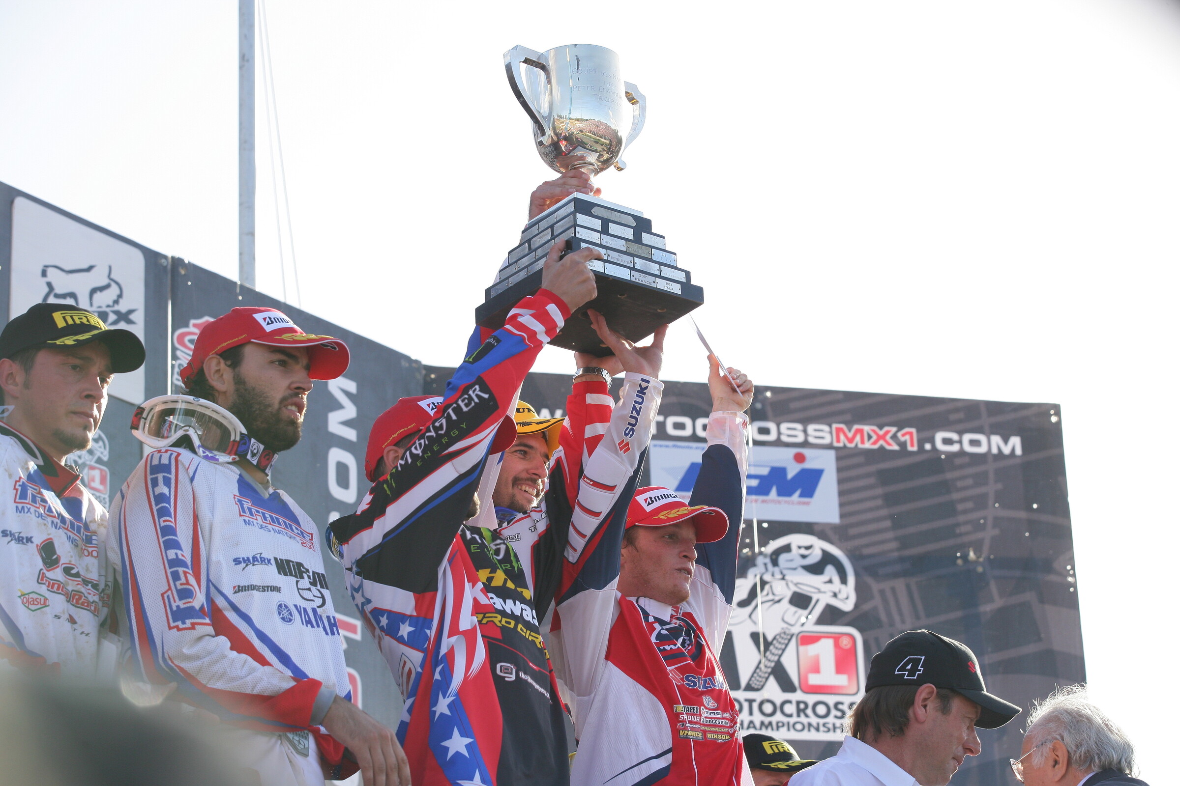 It was in the third turn of the last moto that Team USA had their moment. After Pichon holeshot the final MX1/MX3 moto in front of the two Americans—Carmichael and an admittedly nervous Windham—Ricky blitzed to the inside of Pichon and pushed him out to the fence, opening the door wide for Windham to go from third to first. That seemed to settle K-Dub down. Carmichael went back past him into the lead while Windham rode steadily, allowing only Ben Townley to pass him. The 1-3 scores for the Americans easily topped the 5-7 of France’s own Pichon and Vuillemin, and Team USA had won the MXoN for the first time in five years.