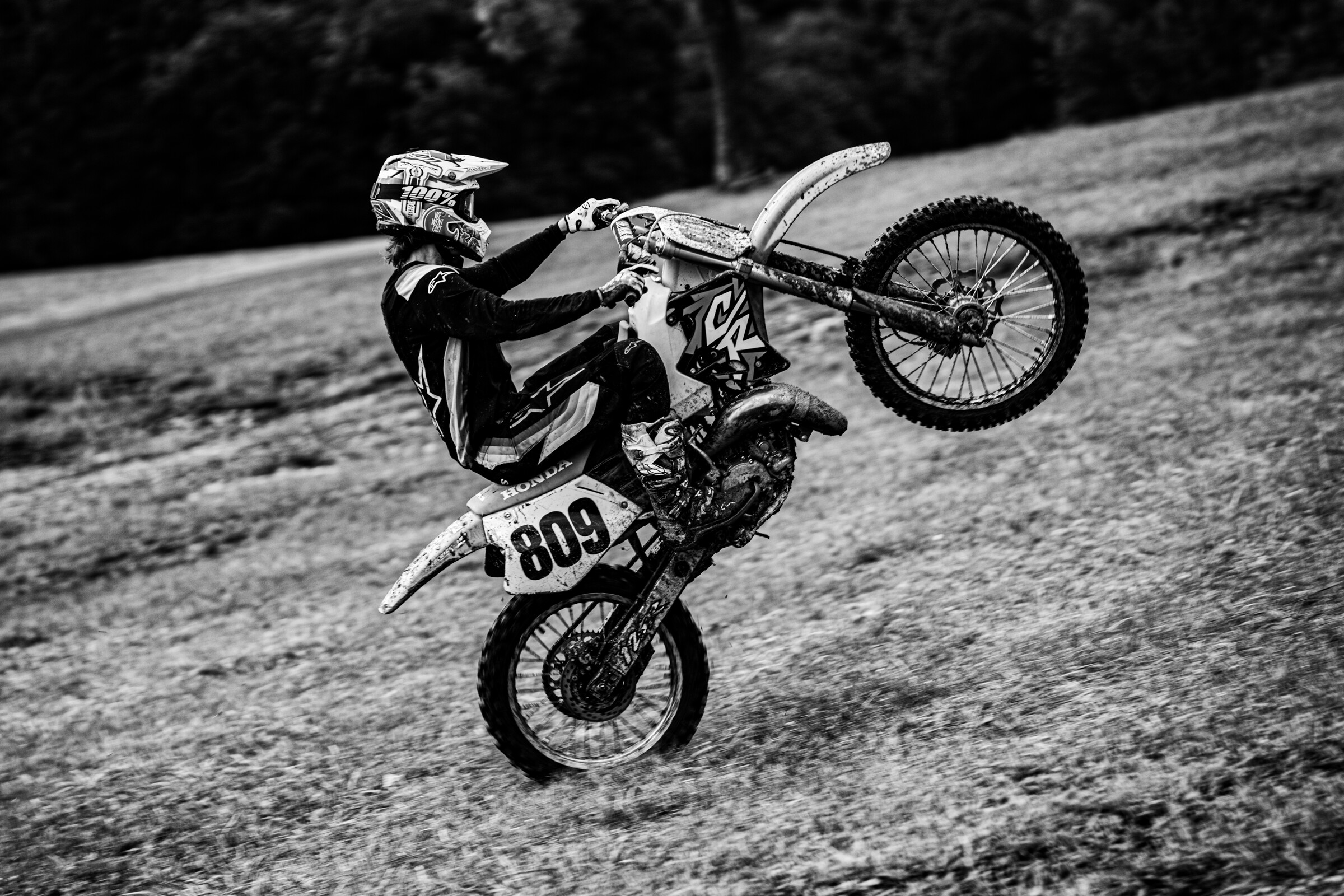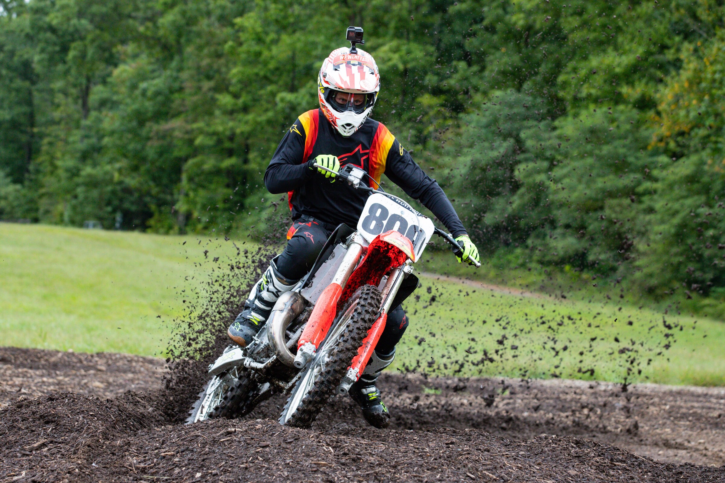 After the race, we hit the road back to Morgantown where I dropped off Caity and my dad and then I hit the road to drive east—I was shooting photos of a bike build project for Brett Smith of We Went Fast at Tomahawk MX early Monday morning. Smith restored a 1996 Honda CR125—the bike he had in high school—so we took over Tomahawk MX for the day to break in the fresh rebuild. I got into the hotel late, got cleaned up, organized all of my stuff, and we were up and at it first thing in the morning. The soggy, muddy conditions from the other corner of West Virginia followed me to Tomahawk but Brett and his crew made the best out of the day. Smith had the biggest grin on his face, even after taking the bike through a handful of puddles and laying it down a few times. You could see the memories from his teenage years coming back to him. Once the important part of the day was done, Brett let me rip the ol' machine for a little bit, before we packed up for the day just in time for rain to come pouring down. Phew! Easy to say Smith’s Project 809 was a success!