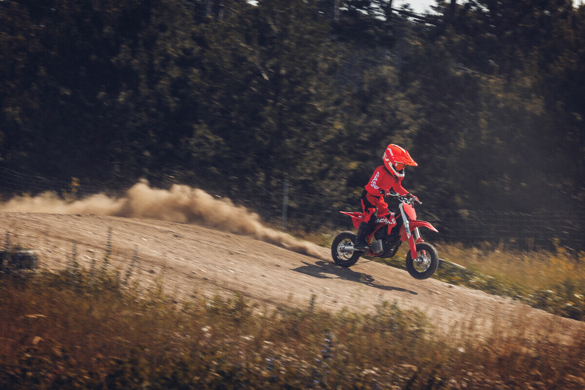 The smooth and powerful 3.8 kW motor is super compact and fitted low in the frame to create a lightweight feel, which means riders can keep spinning laps without getting too tired. There are some seriously cool and hassle-free things to know about this motor, too. It’s maintenance free, resistant to dust and water, and features six different ride modes to easily alter the power delivery to suit the ability of any young rider. With no clutch or gearbox needed thanks to the electric motor, the MC-E 3 is the perfect machine for kids to learn the basics of riding dirt bikes in the simplest way possible.