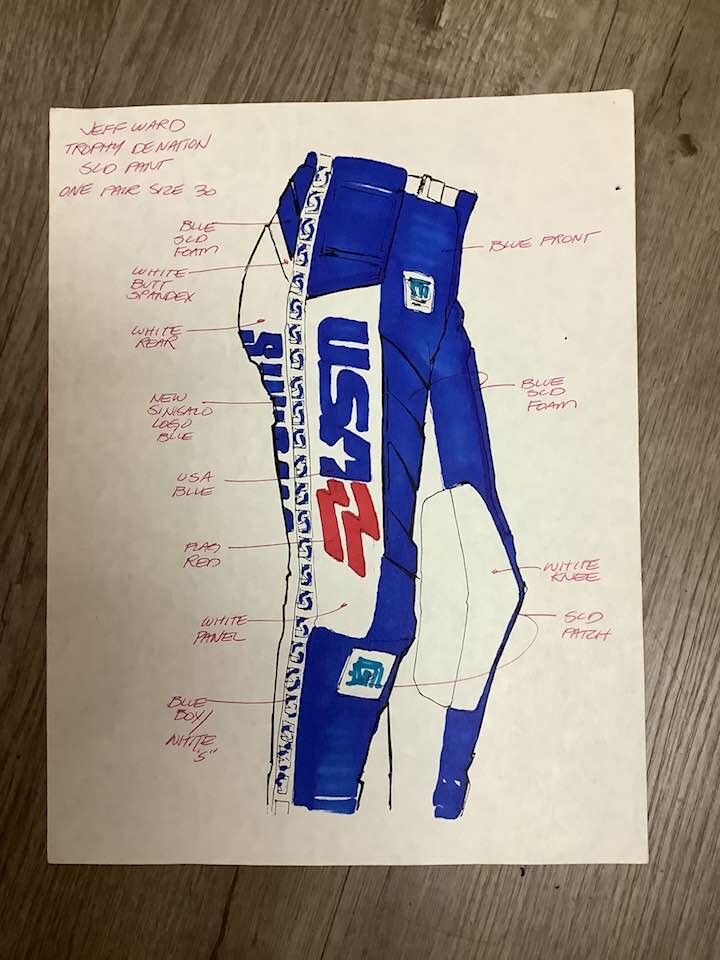 Bob Rathkamp of Sinisalo: As we get ready to head back to RedBud it reminds me of all the years we have been cheering on our boys!! A lot of names of great riders, tough conditions and Winning!!! Here are a couple examples of pants we made for Wardy some years ago. Was always fun to rep the Red, White, and Blue.