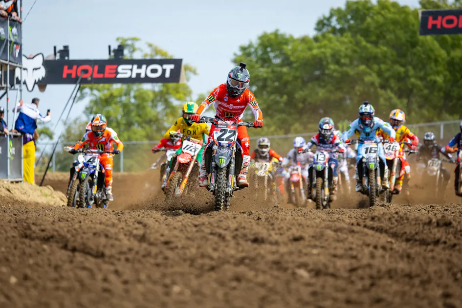 The second race of the day featured the MX2 and Open class riders as we got our first look in the races of Chase Sexton, Jett Lawrence, Dylan Ferrandis, and more. Off the start, it was Mattia Guadagnini who came through and grabbed the holeshot. He was followed by Chase Sexton, Jett Lawrence, Justin Cooper, and Hunter Lawrence inside of the top five.