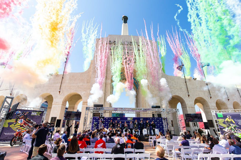LOS ANGELES – MX Sports Pro Racing and Feld Motor Sports, Inc., have announced further details pertaining to the formation of TheSuperMotocross World ChampionshipTM for 2023 and beyond. Introduced during an exclusive press event at the landmark Los Angeles Memorial Coliseum was the SuperMotocross World Championship qualification method, points structure, race format, distribution of the sport’s largest purse–$10 million–and the series’ media rights partner for the next five years. The 2023 AMA Pro Motocross Championship schedule was also unveiled, where an 11 round summer campaign of the prestigious series will serve as the centerpiece of the SuperMotocross World Championship 31-race calendar alongside the Monster Energy AMA Supercross Championship.