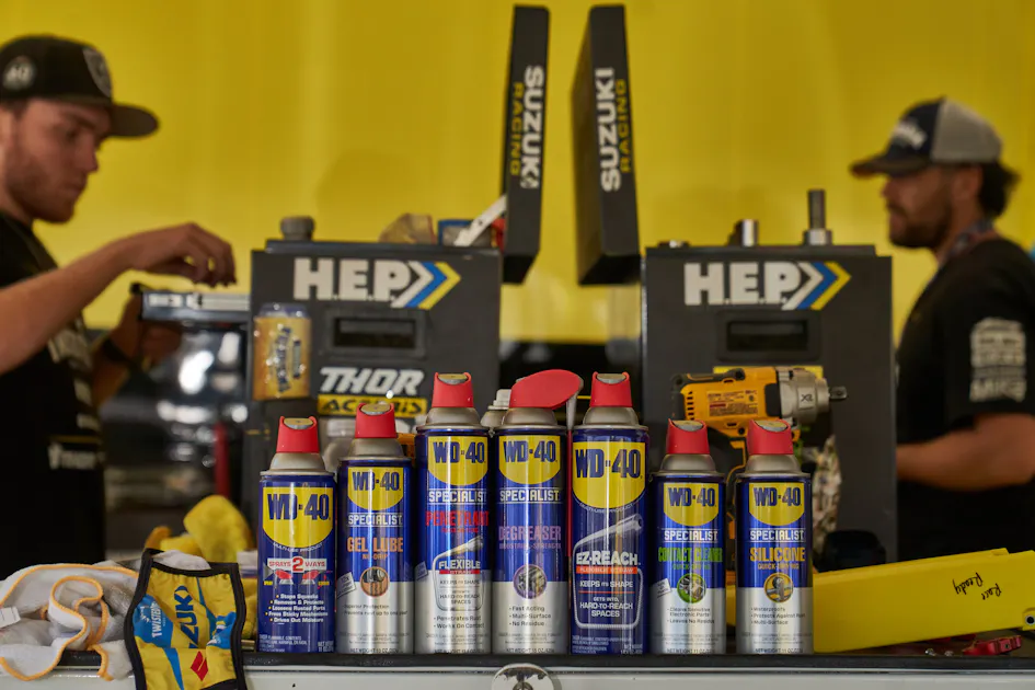 Soules relies on WD-40 Brand products to make sure his factory bikes run at their peak, but he also recommends them for us weekend-warrior types too. “I’ll say this,” he says, “if they’re not using these products, they should be. Go get some and try it because, as a professional, I have not found one thing that I don’t like.”