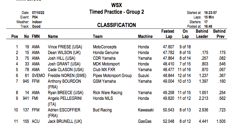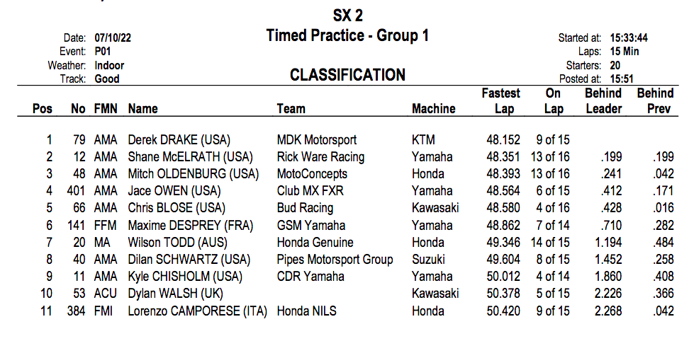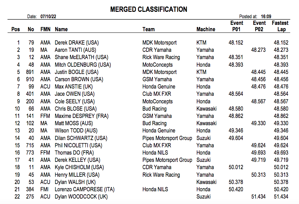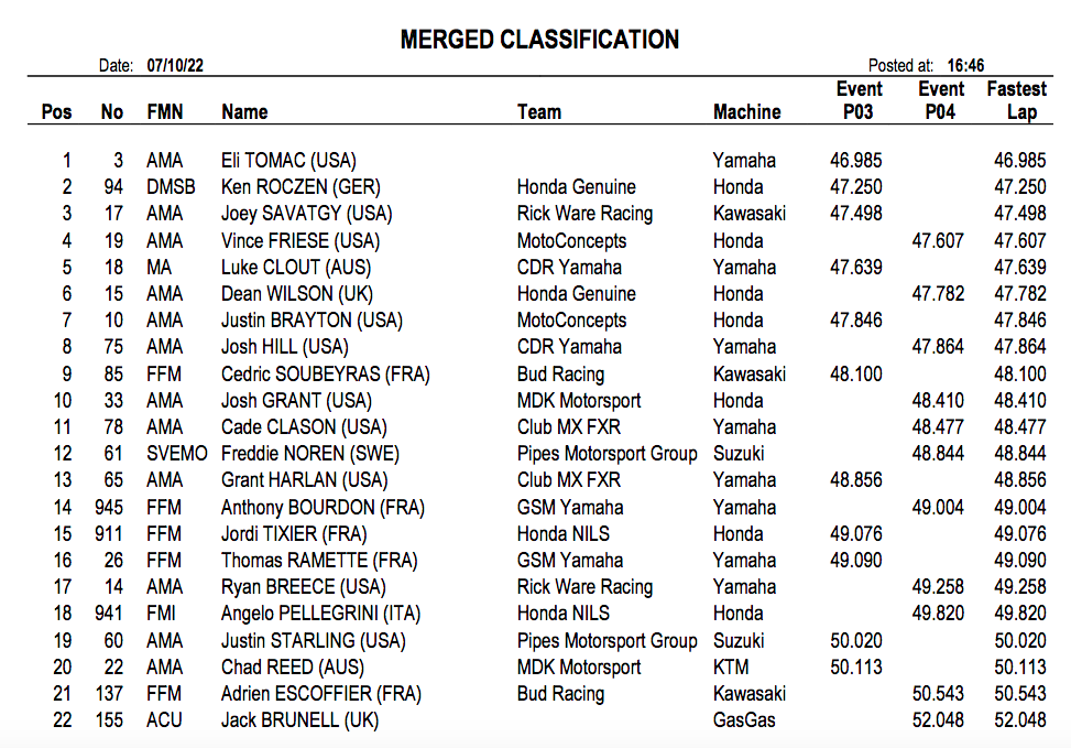 The first round of the 2022 FIM World Supercross Championship in Cardiff, Wales, saw its first set of practices run on Friday. With two groups in each class running sessions on Friday, we eventually saw Monster Energy Yamaha Star Racing's Eli Tomac top the sheets in the WSX class with MDK Motorsports' Derek Drake put down the top time in the SX2 class.
