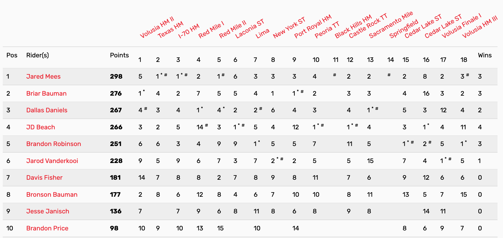 | Michael Hicks (KTM) | Hoosier Arenacross Series | 450 Pro |