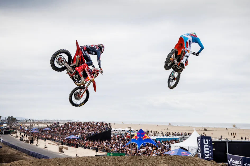 One thing that happens when you take corners out of a supercross race is it shows how technically incredible the best in the world are when attacking jumps and scrubbing. Arguably one of the best at it is Troy Lee Designs/Red Bull/GasGas rider Justin Barcia who threw some incredible scrubs on his way to a third-place finish at this past weekend’s Red Bull Straight Rhythm event.