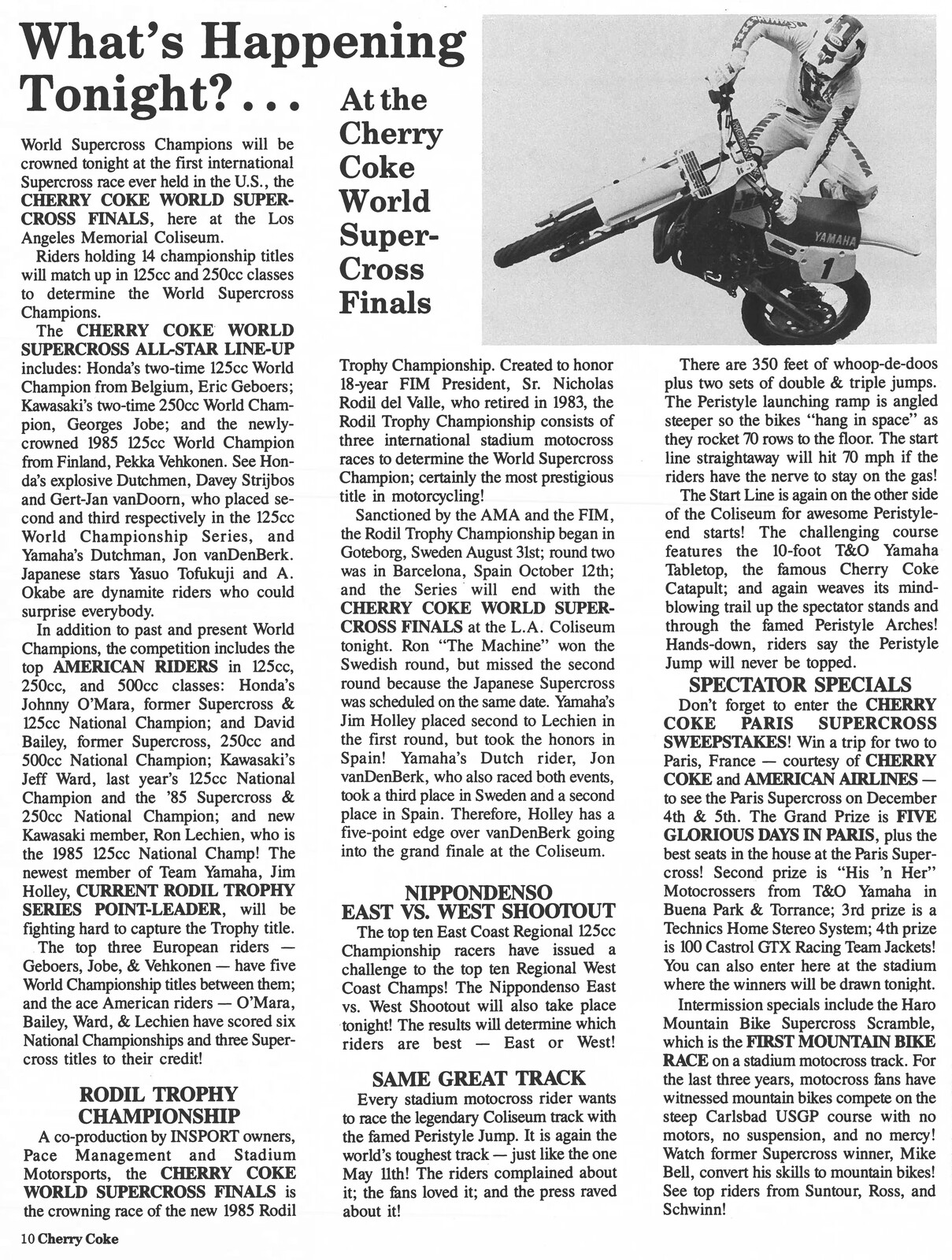 Last week we used Racerhead for a trip down FIM World Supercross memory lane, explaining that while this new pilot series is a first for the new promoter, WSX has been around in several different incarnations over the years. While researching that history through old issues of Cycle News, old event programs, and magazine features, I found a couple of other things that might be interesting to share.
