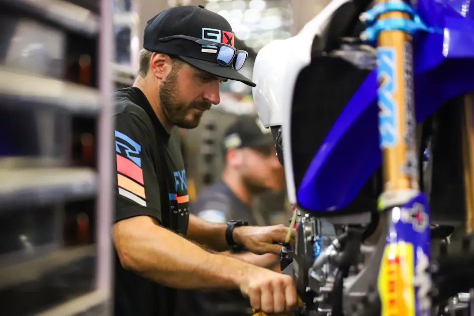 To me the most difficult process on a race bike is not building the bike, or even working on it. The most difficult part is coming up with a game plan or strategy on race day. The strategy to make your rider the most comfortable as he can be and getting the most out of your bike at the same time. A lot of riders don’t prefer new tires, so there is a break-in process for them throughout the day. Same goes with clutches. You want the clutches seated in, but you also don’t want to push them to the point where they could fade in a main event, affecting your start.