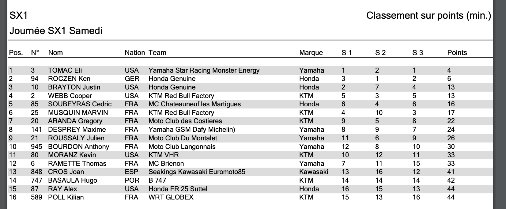 But first, more about the race. The track here in Paris is one of the tougher ones in recent memory with big whoops and some rhythms that only a few of the top riders can do. The format is a SuperPole that starts off the night which sets the gate pick for the first of three main events. The mains themselves were eight minutes, 10 minutes, and 12 minutes plus a lap and scoring was done with the Olympic scoring format. Oh, and all six main events count towards the overall for the prestigious King of Paris title that will be crowned tomorrow afternoon.