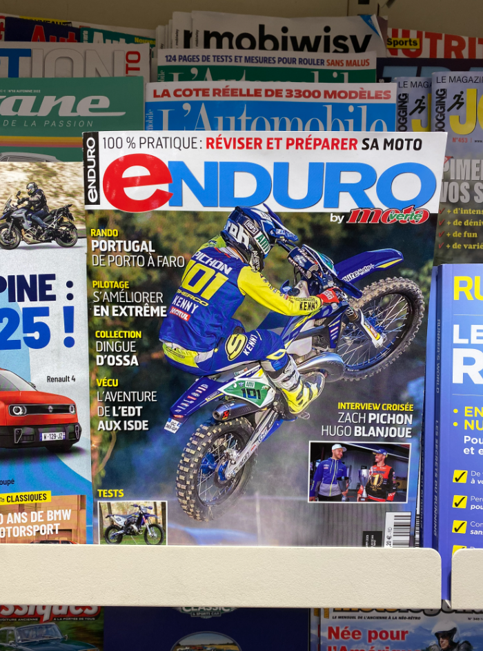 The other magazine was Enduro by Moto Verte and it featured rising French off-road start Zach Pichon, the son of two-time AMA 125cc Supercross Champion and two-time FIM 250cc World Champion Mickael. Zach recently won the Enduro Junior World Championship aboard a Sherco. He may not have gotten his father's motocross gene, but he definitely has his pure dirt bike talent!
