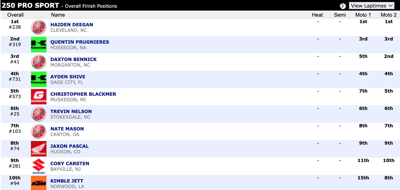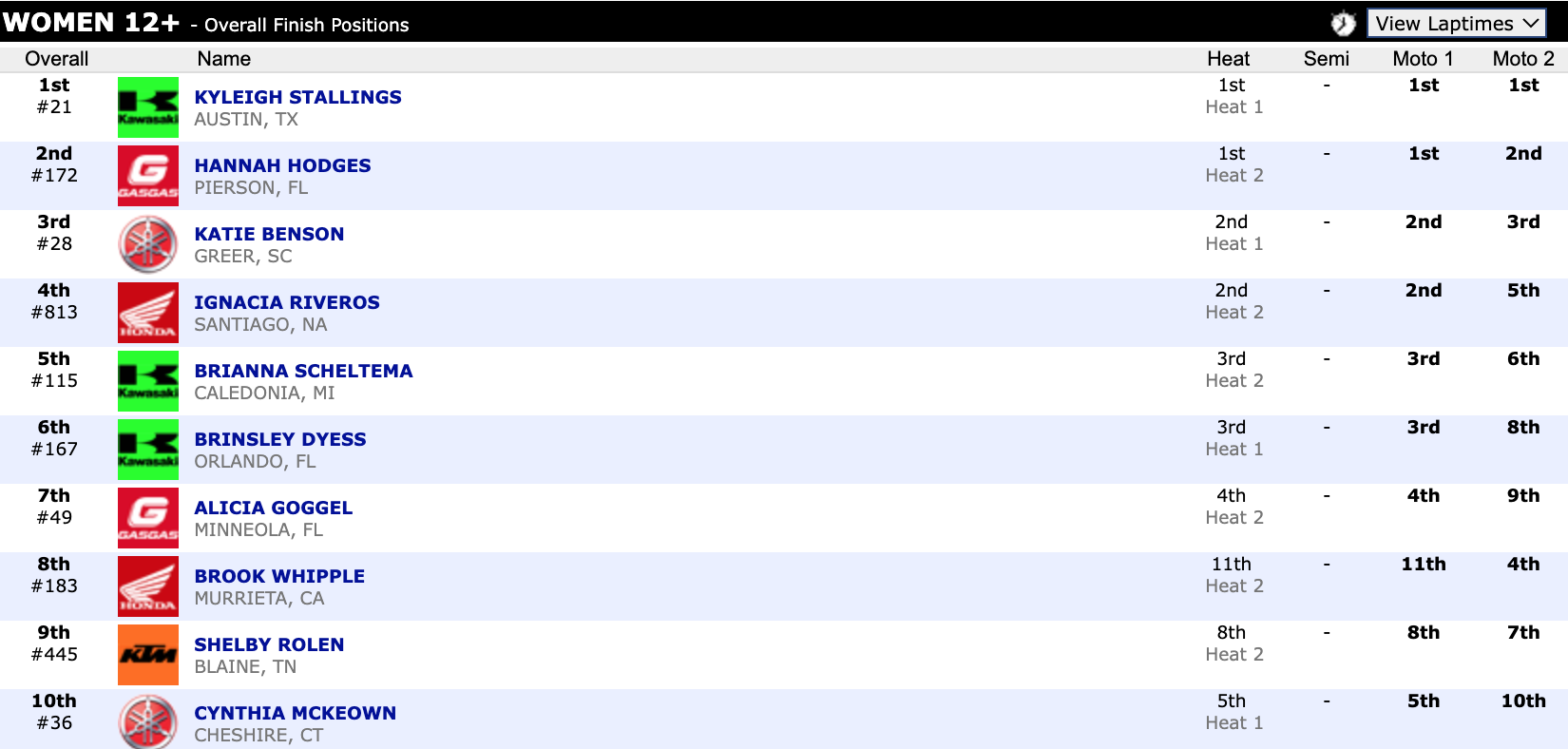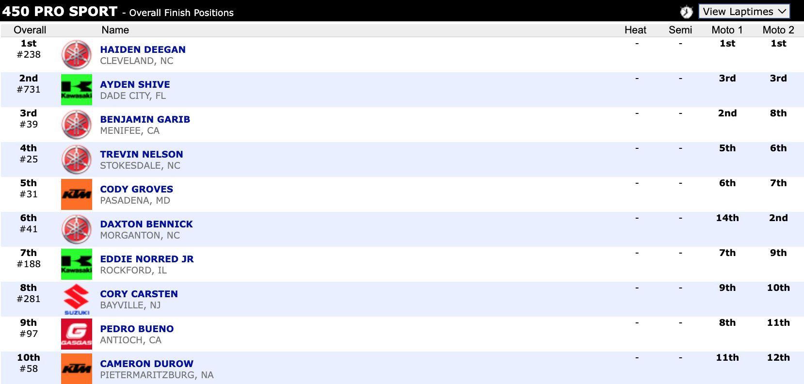 Check out the top ten overall finishers in supercross.