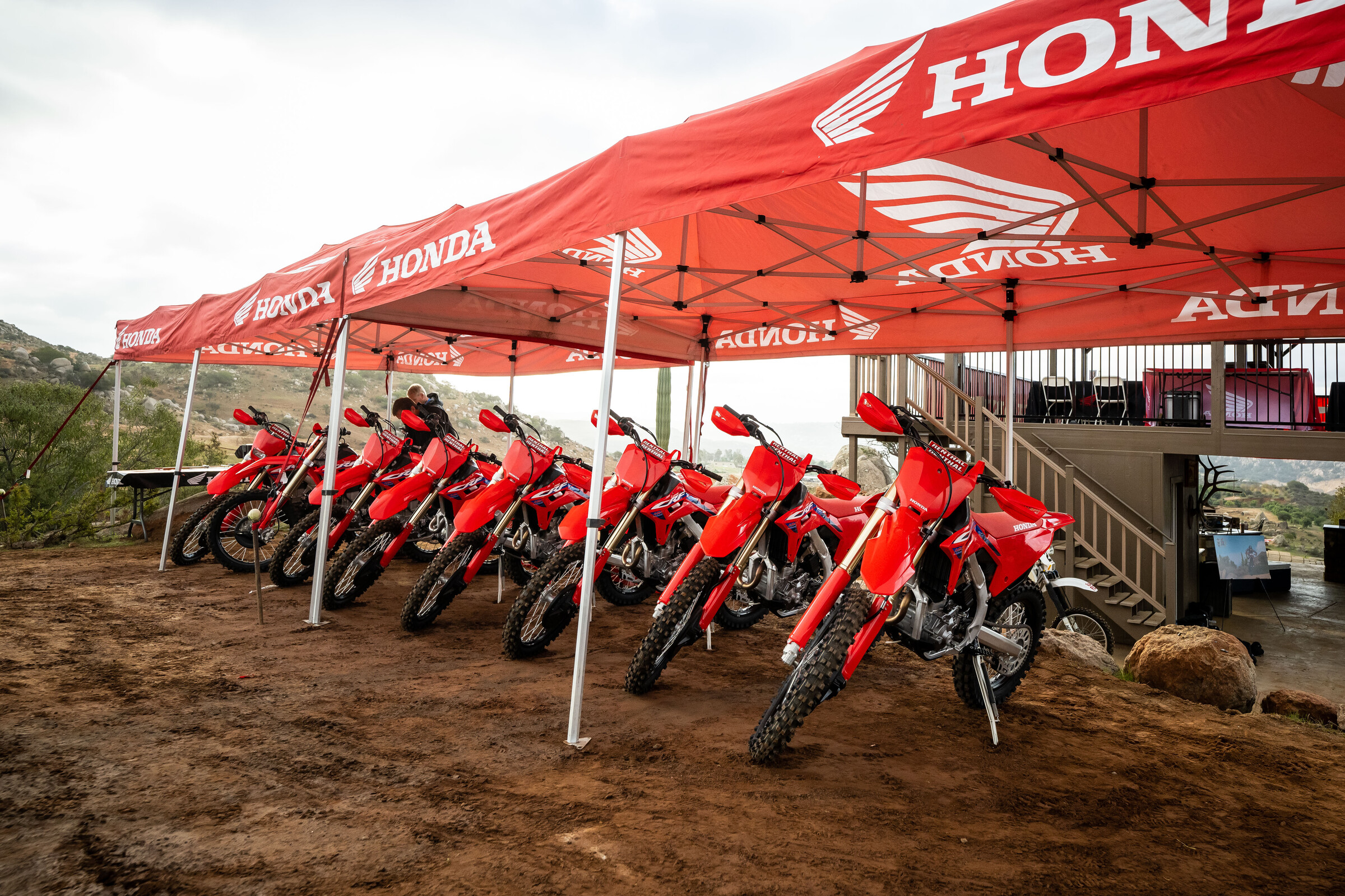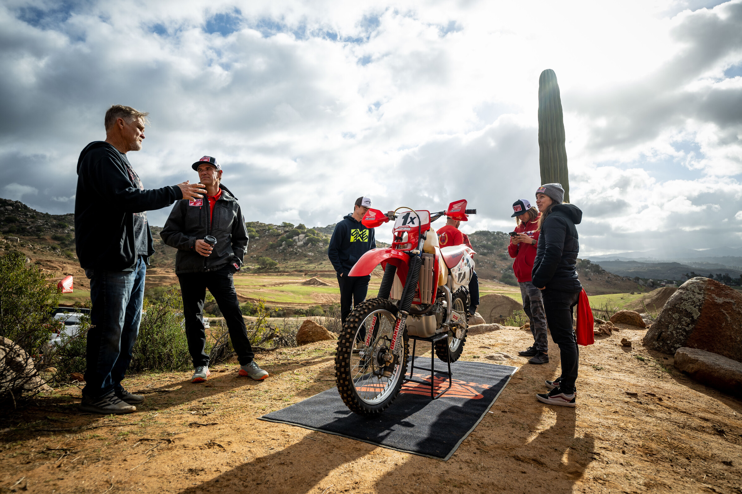 In a special event held yesterday east of San Diego, American Honda celebrated its 30th year working with Johnny Campbell. Off-road media and personalities gathered at beautiful Chocolate Mountain Ranch to socialize with Campbell, check out several of his old race bikes, enjoy a taco lunch and ride 2023 models Campbell helped develop, including the CRF450X, CRF450RX and CRF250RX. As a token of their appreciation, Honda presenTed Campbell with the 1997 XR600R that he rode to his first win in the SCORE International Off-Road Racing series.
