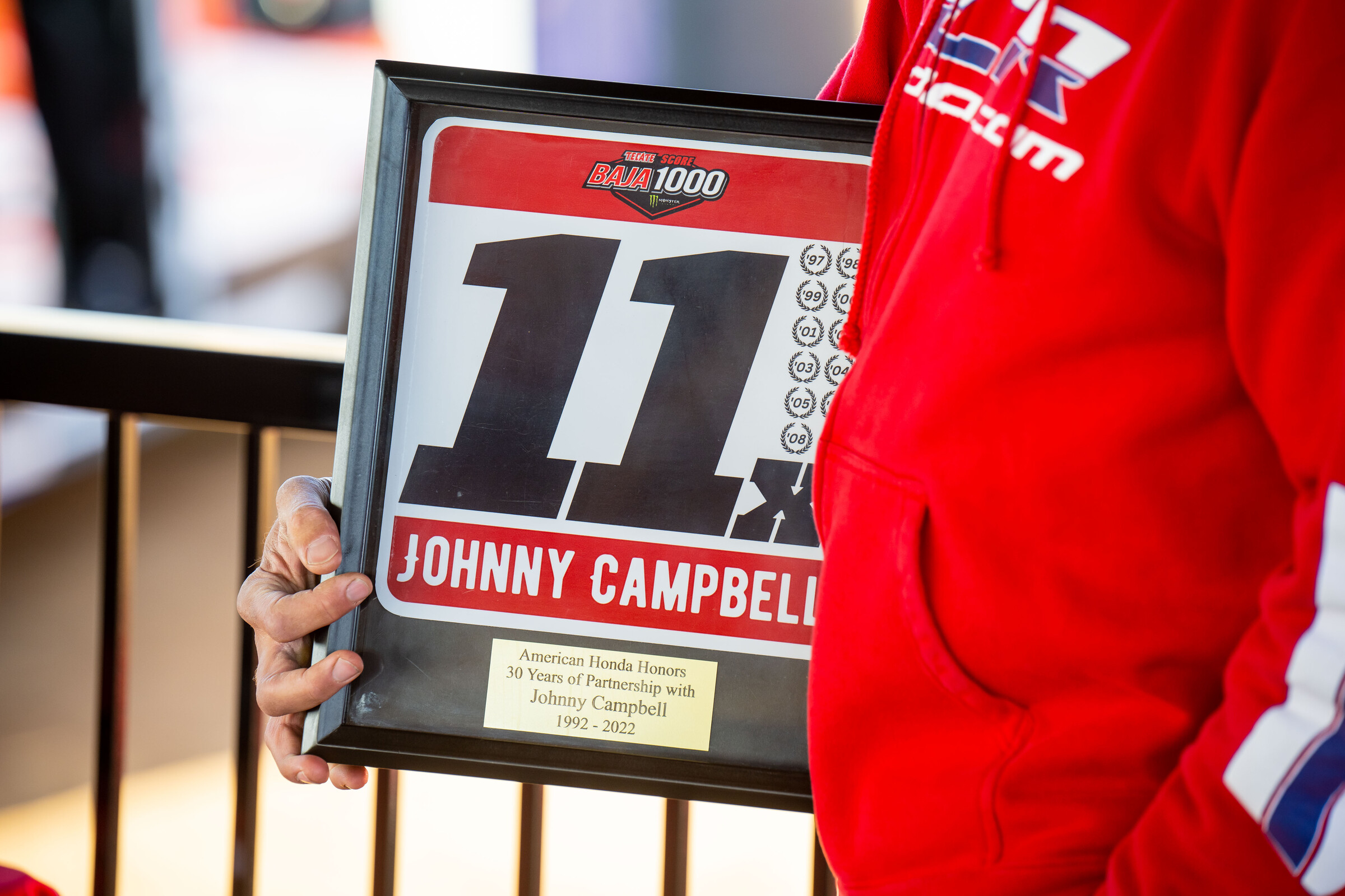 Tuesday, I got the honor of being at Johnny Campbell's 30-year Honda Honoree Presentation and it was quite an experience for me to listen to Johnny speak about his time at Honda started/unfolded and how his 30-year-long career (so far) in the desert has been.