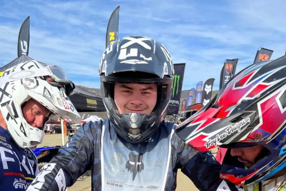 As Anthony was getting dressed, I spoke with Anthony’s mother Deb, and she said she Anthony was the first one up in the morning yelling, “Let’s go riding!” Deb was telling me that she was a little nervous, but Anthony’s father was a little more emotional than she, which to me as a father of a son that rides, is understandable. As I got Anthony on the bike and strapped in, I could see his eyes light up like a Christmas tree! Gone was the injured kid and what returned was those eyes of a motocross racer. Cam Peterson (Yamaha factory road racer) and I gave Anthony a quick tutorial about the bike, and he was off! Riding side by side with Anthony as he took his first shifts was something I will never forget. We were hooting and hollering and having a great time just like two dudes do when riding dirt bikes together. Anthony absolutely killed it on the bike. His elbows were bent, was in the attack position and even floated over some jumps. Oh, we had a crash, but that tip over was actually good for Anthony. MotoDemption had a lead rider (for one choice) and then two riders behind Anthony to aid in case of a crash. Our lead rider Connor Olson warned Anthony about an outside line which had a rut in it, but as a rider that has never been on a bike in this capacity, it’s hard to judge how the bike reacts when strapped to it. Anthony learned real quick what the bike reacted like in ruts after that and to me that wiped away any nervousness he had because he shredded that KTM 350 SX-F like he had been on it for months!