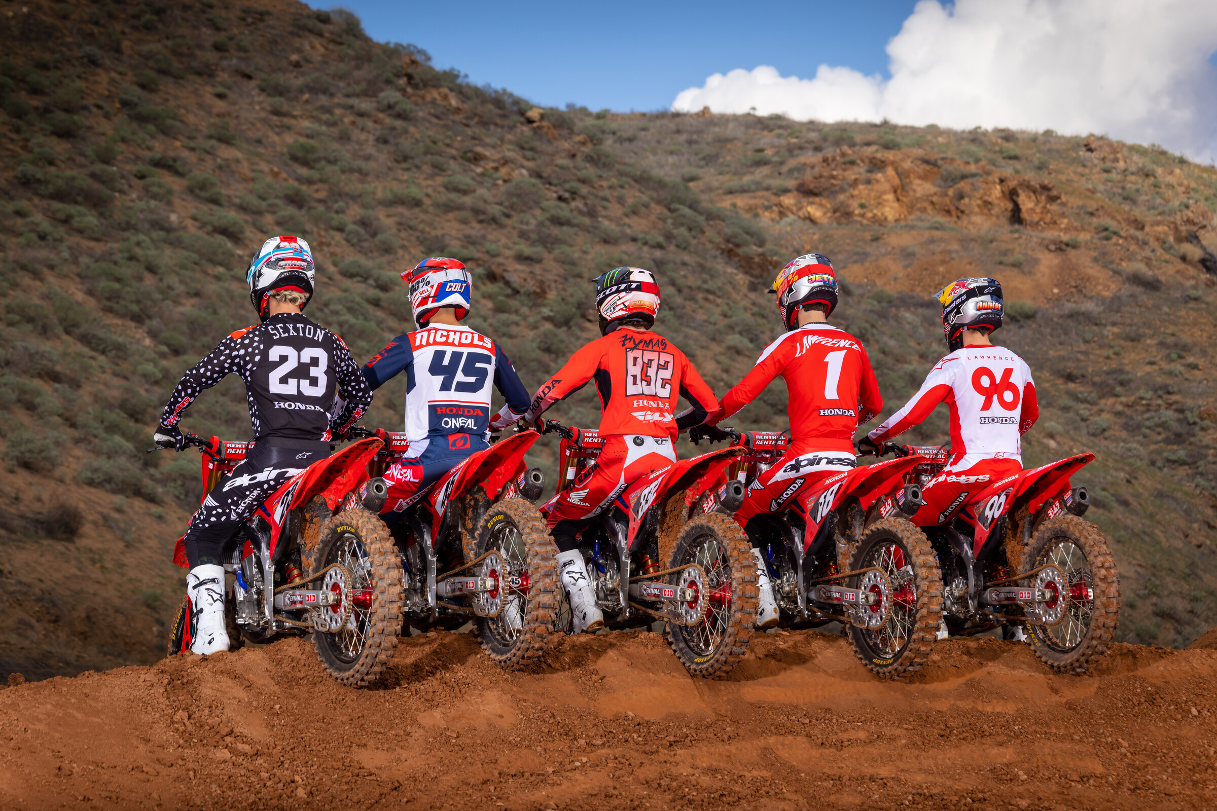 With the racing season fast approaching, Team Honda HRC presented its 2023 roster, including riders, management and technicians, to the media during a special event held today at Southern California's Blackmore Ranch. This will mark the 50th anniversary in motocross for American Honda, which approaches the '23 AMA Supercross season with a powerful rider lineup comprising Chase Sexton, Colt Nichols, and Hunter and Jett Lawrence, along with Chance Hymas.