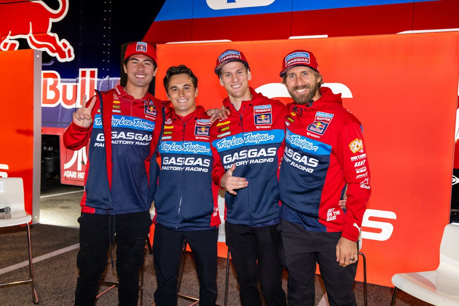 Troy Lee Designs/Red Bull/GasGas had their team intro on Wednesday night and while the riders remain the same from the previous year, they do have a new machine underneath them and some new personnel changes as well. We caught up with Justin Barcia, Michael Mosiman, and Pierce Brown to see how the testing has been on the new GasGas MC 250F and 450F Factory Edition machines as well as what new team manager Max Lee is like.